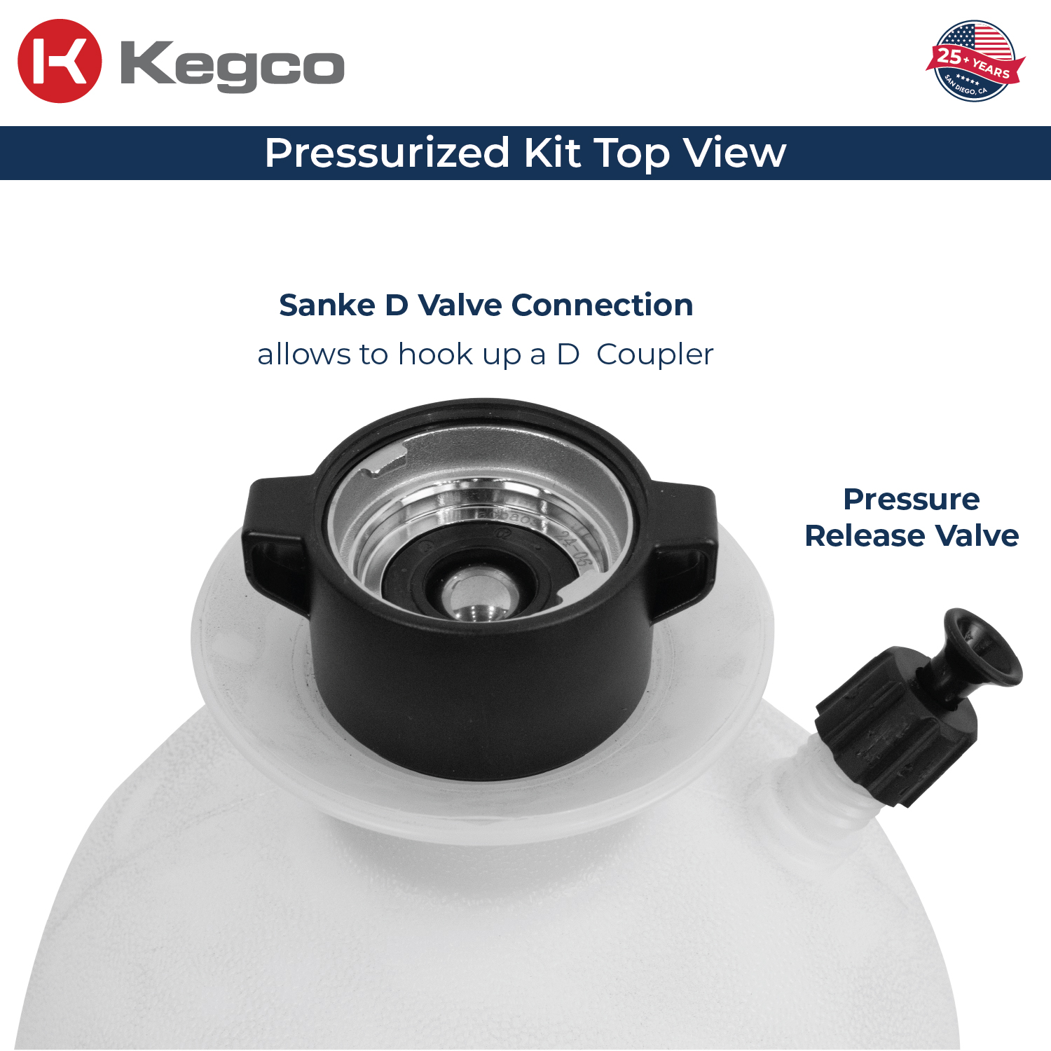 - Pressurized 2-gallon cleaning bottle with Sanke D Valve Connection