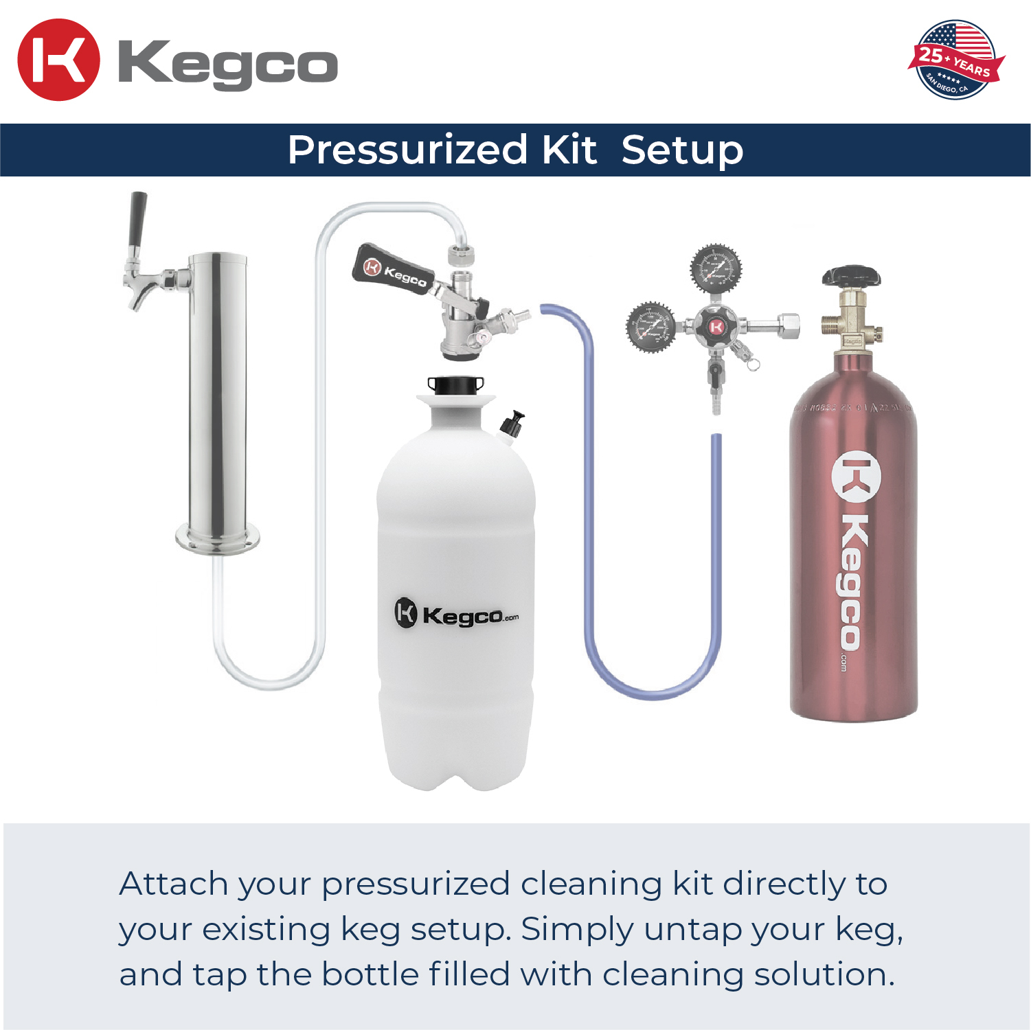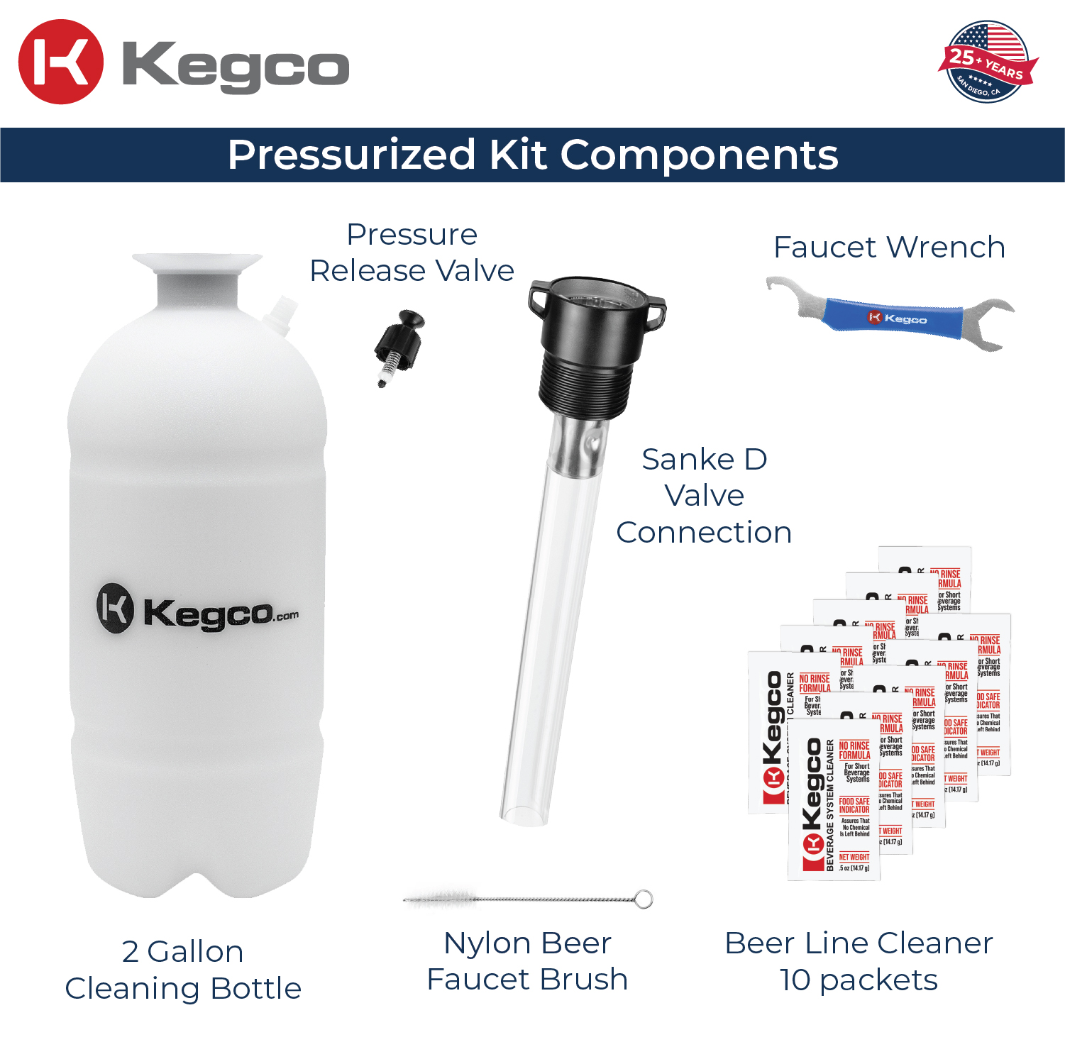 - Effortless Cleaning Power. 2-gallon pressurized cleaning bottle with Sanke D Valve quickly connects to your system for fast, professional-grade cleaning.