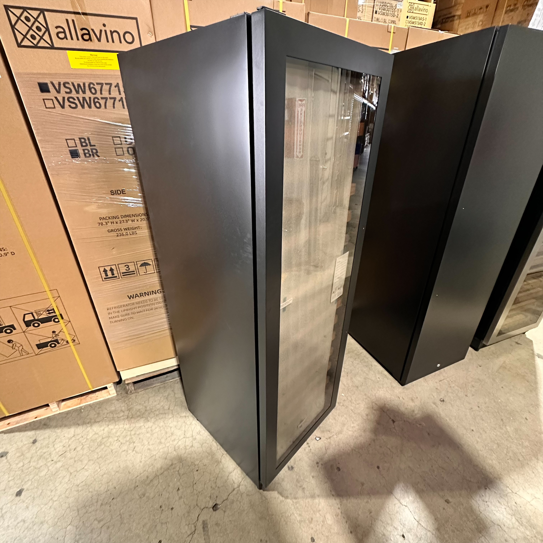 Scratch & Dent - We currently have an Allavino VSW16371S-1BL Single Zone Left Hinge Black Metal Wine Cooler Refrigerator that was returned to us.