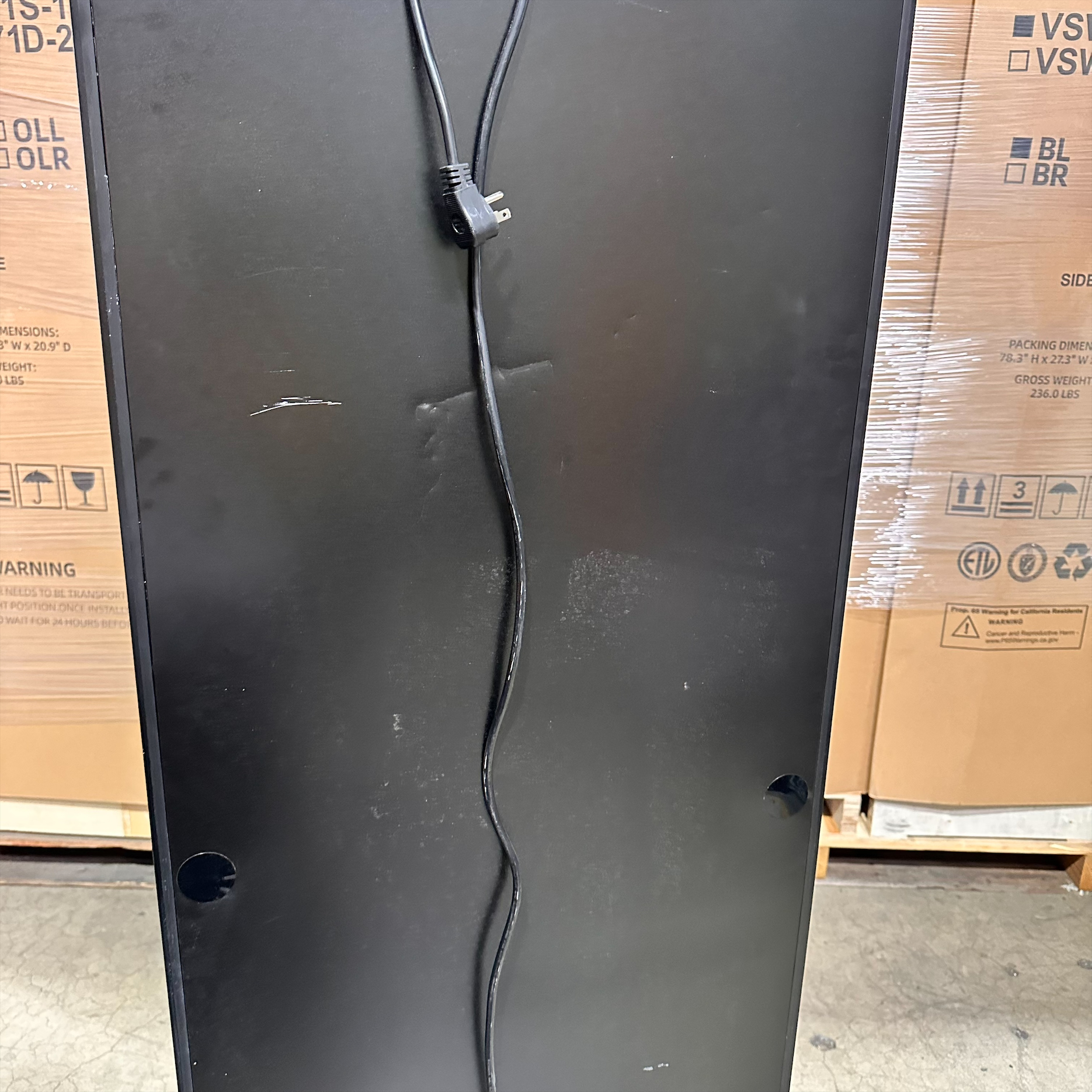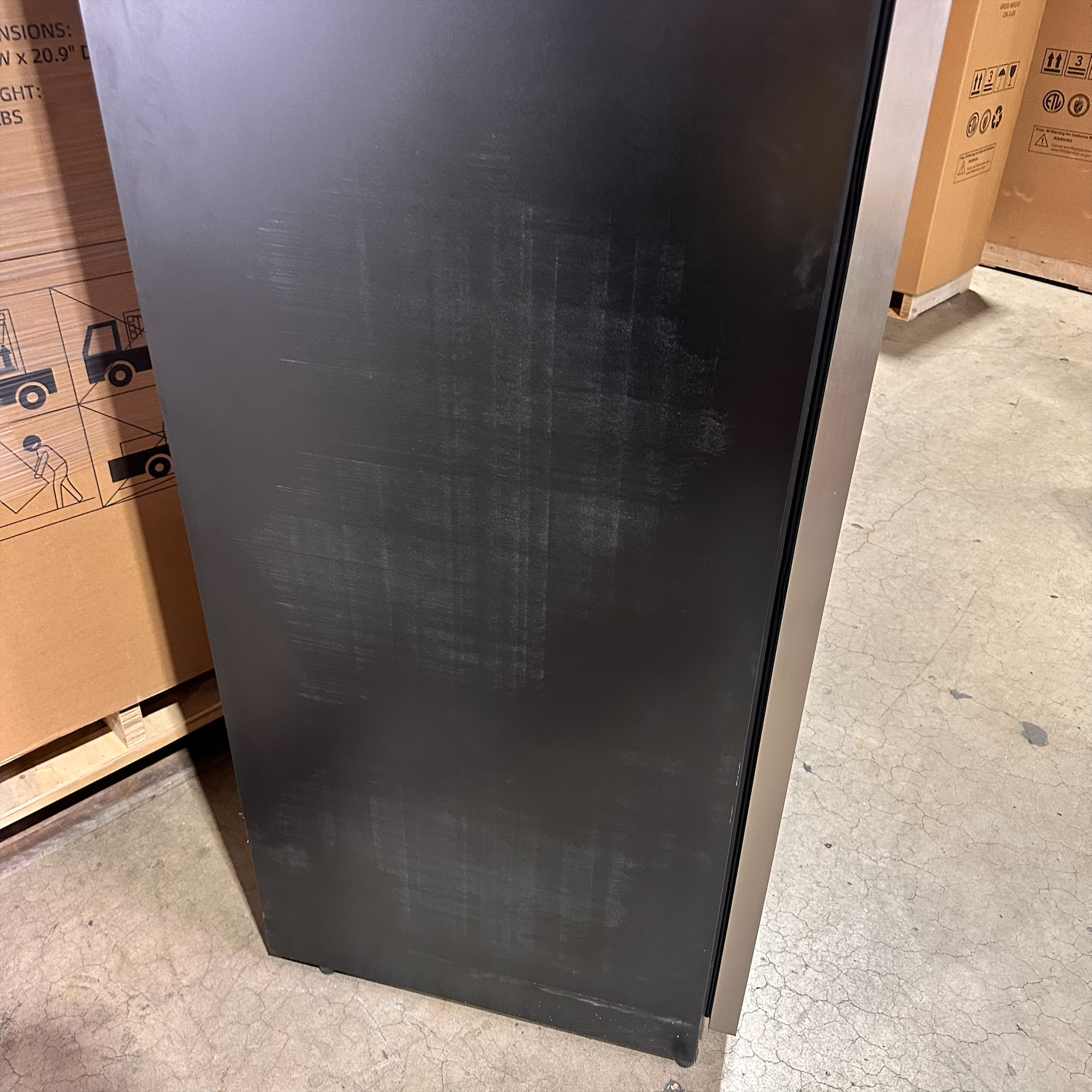 This unit was inspected to ensure it includes all the standard parts and manual. It is in good physical condition with the exception of scratches on the left, right, top, back, and feet sides of the unit as well as a dent on the back. (see last photos). Damage does not affect the performance of the unit. Wine refrigerator has been tested to ensure that it is in good working condition with a temperature that was verified down to 40.8°F on the lowest setting.