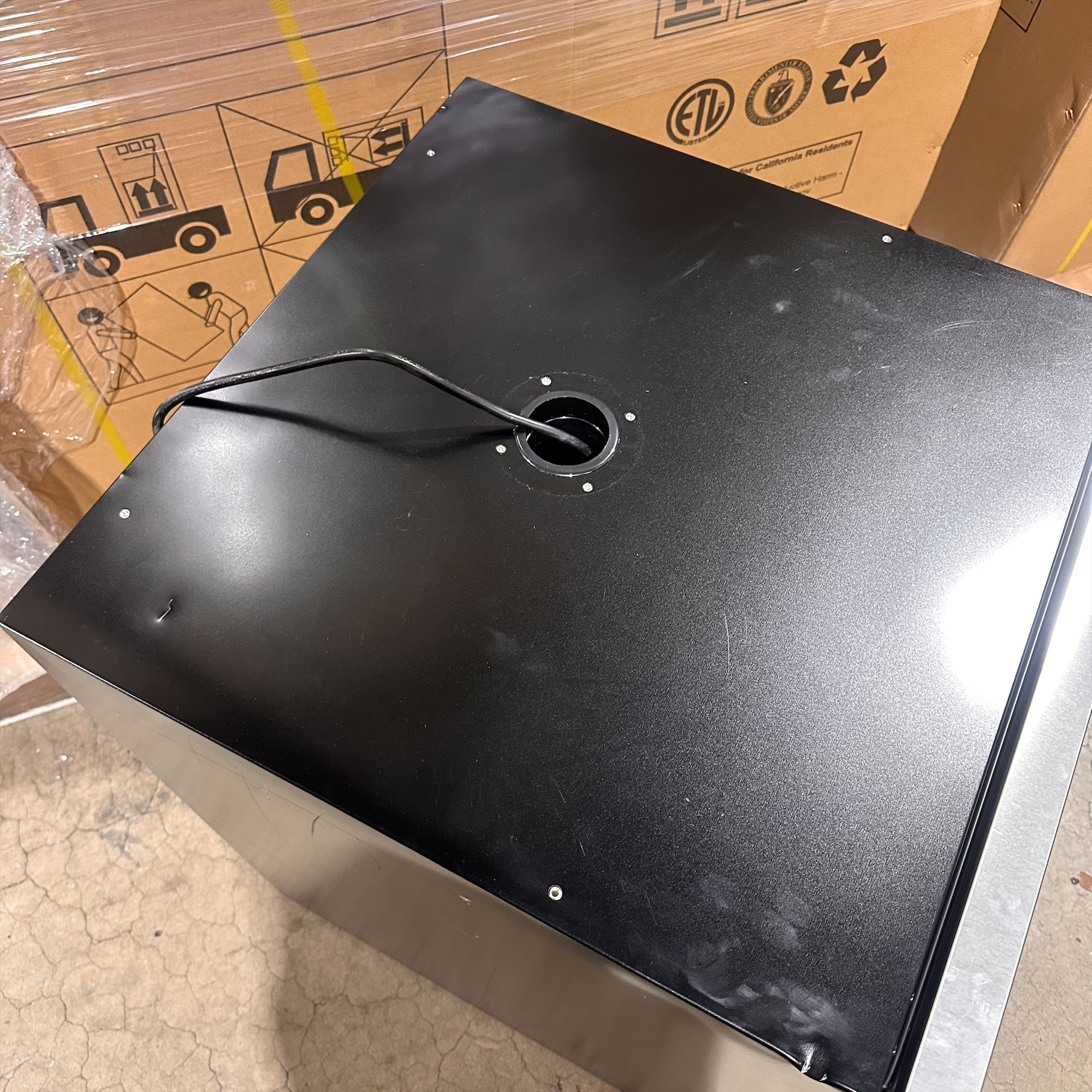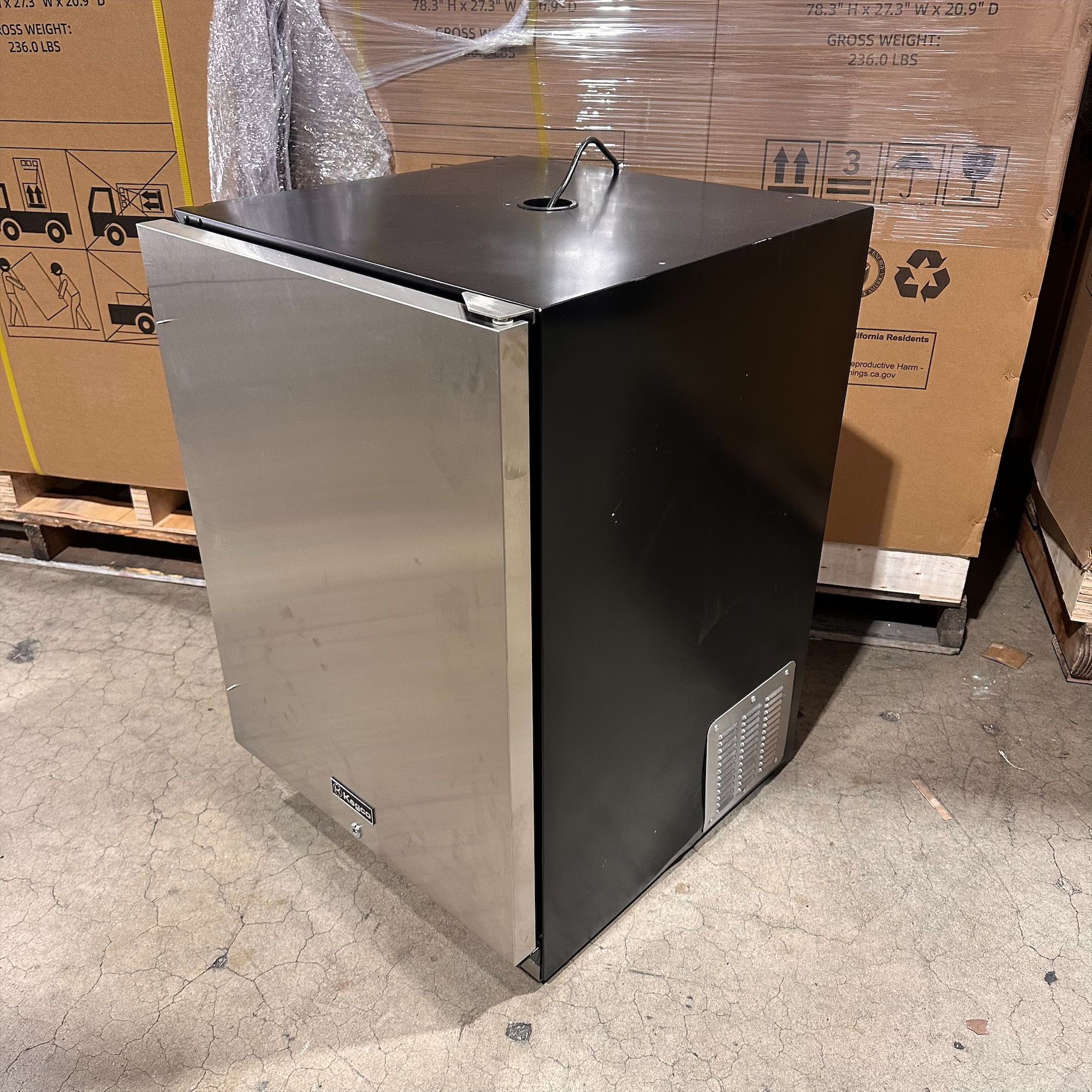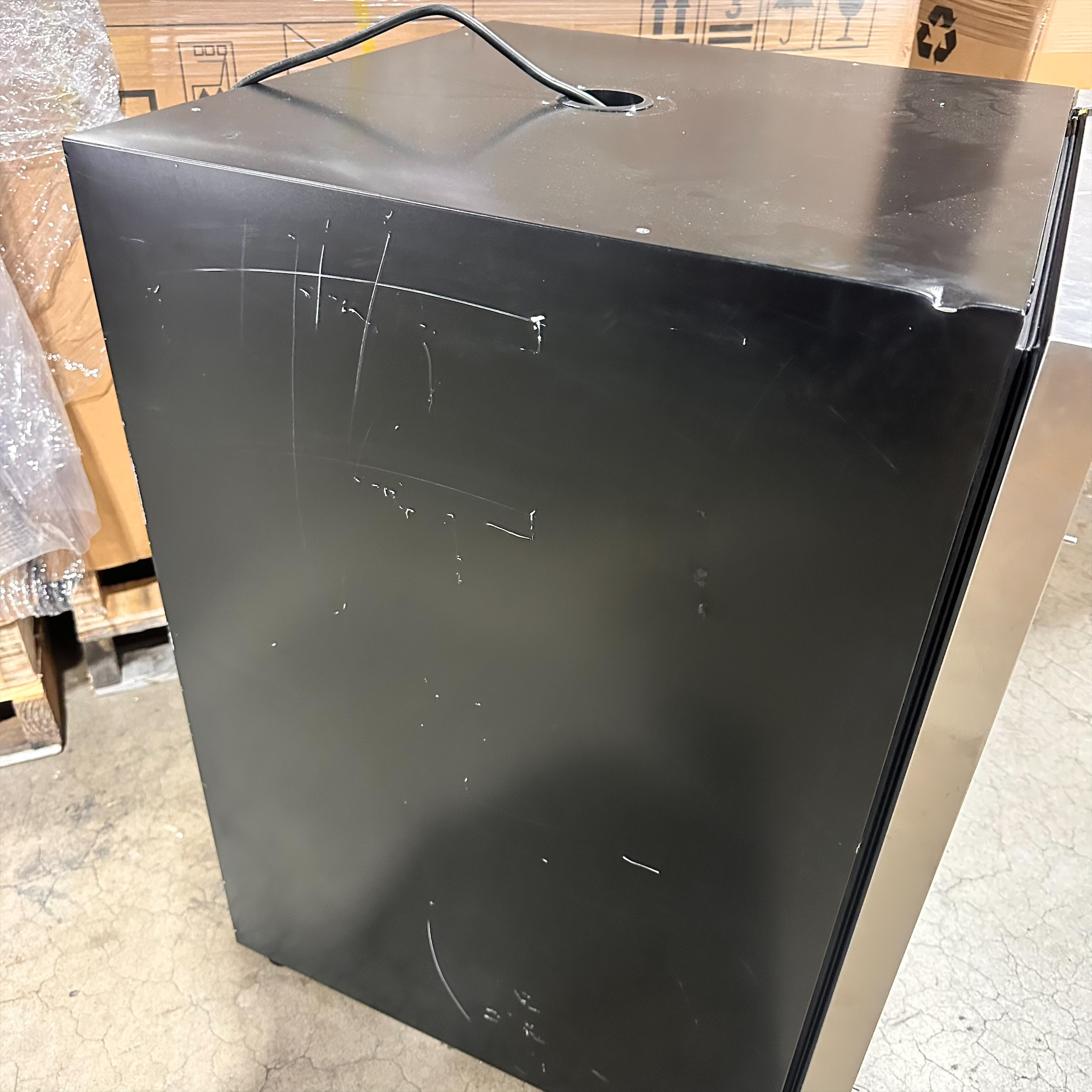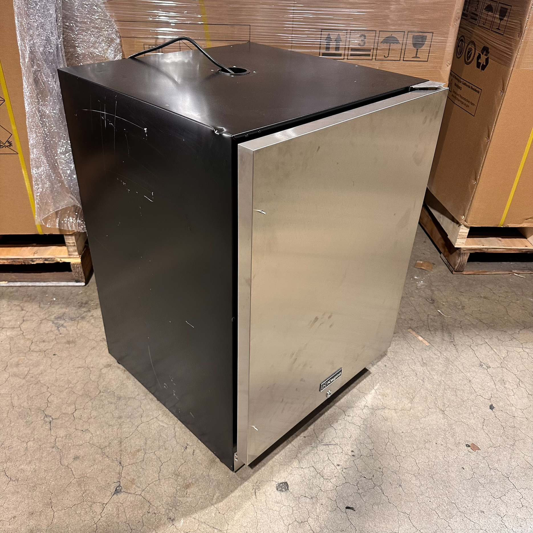 This unit was inspected to ensure it includes all standard parts and manual. It's in good physical condition with exception of scratches on the left, right, top and back sides of the unit. There is also a small dent on the bottom of the unit. (see final photos). Damage does not affect the performance of the unit. Kegerator has been tested to ensure it is in good working condition with a temperature that was verified down to 31.4°F on the lowest setting.