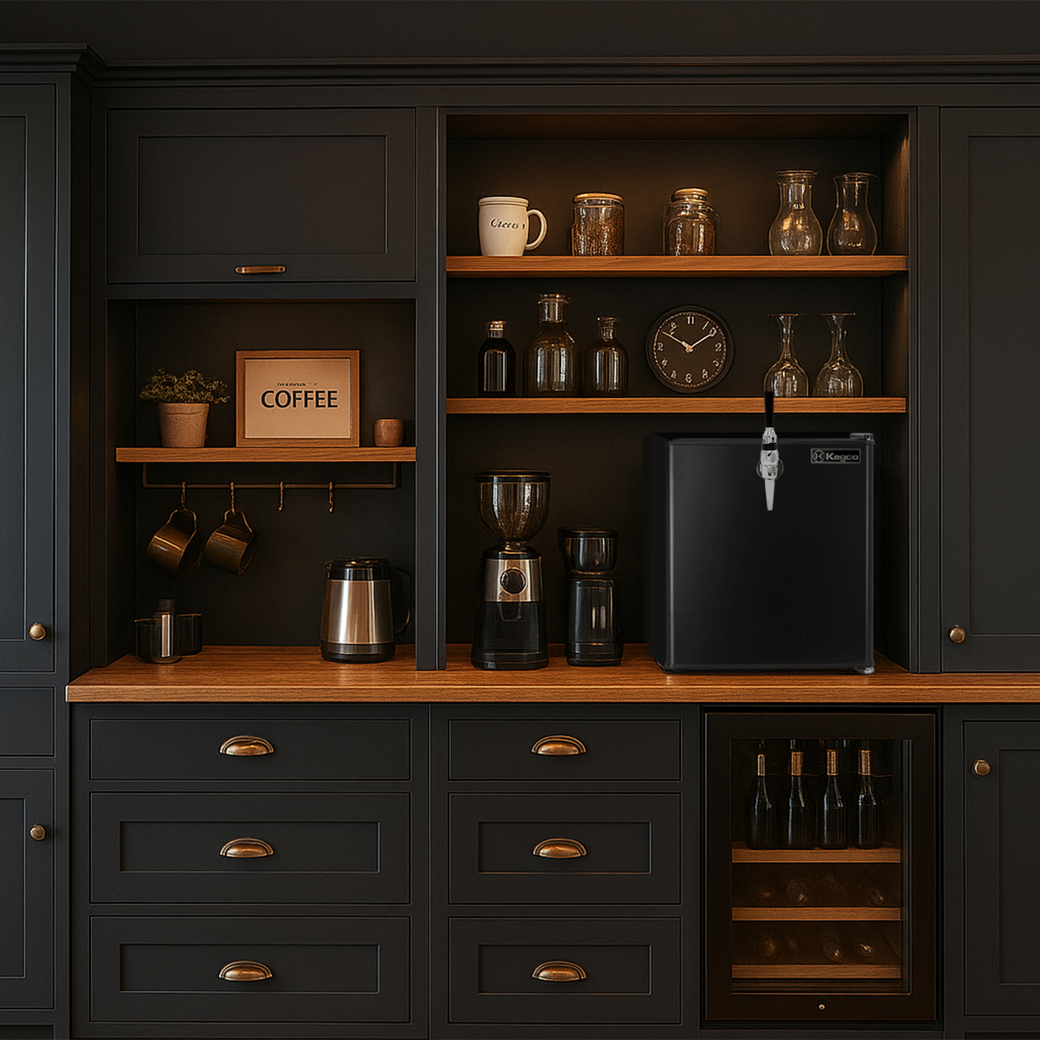 The sleek and compact design allows this kegerator to sit on a counter top without taking up space and can be easily moved as needed. This small counter top kegerator is an exclusive Kegco design and allows coffee shops, offices, bars, and restaurants to easily incorporate a kegerator despite space limitations. Easily plugs into a standard electrical outlet and low-profile design allow it to seamlessly integrate into most spaces.