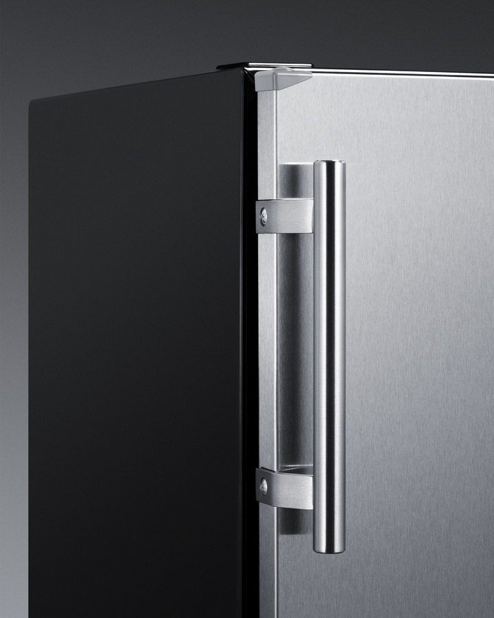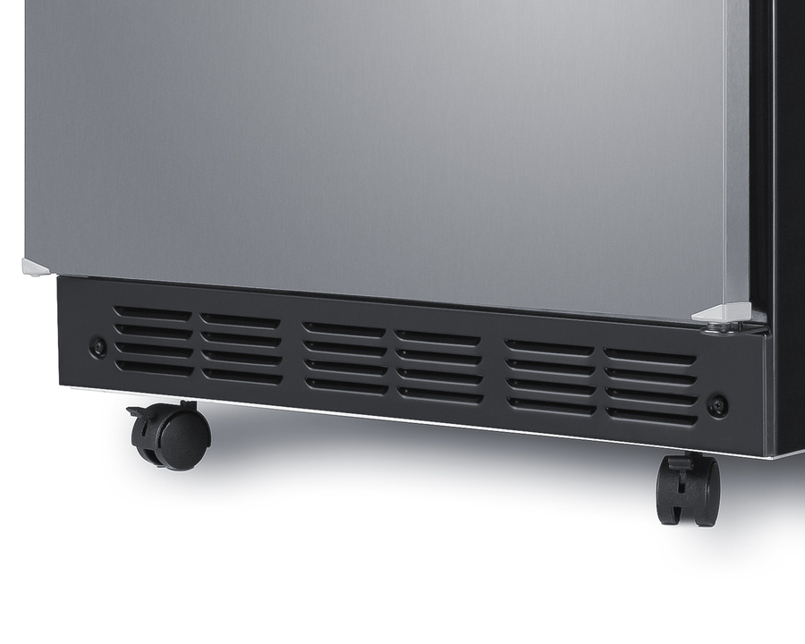 Sized with a 24" footprint, Summit's SBC7BRSCM2 is a versatile cold brew/nitro coffee dispenser that is ETL-S listed to NSF-7 standards for use in commercial environments. The design also meets residential standards for home use. It can be recessed under counters or used freestanding. Adjustable legs allow you to set the height between 33-1/2" and 34-1/2" for the perfect fit. It includes a black steel leg shield for optional use if you find there is too much space between the front and floor when the unit is set at its taller height, as well as a set of casters (two locking) for optional mobility if preferred. The user-reversible stainless steel door offers an elegant look for any kitchen, with a special coating that makes it easy to wipe off the surface for a fingerprint-resistant front. The stainless steel handle is side mounted for an easy grip and attractive look.