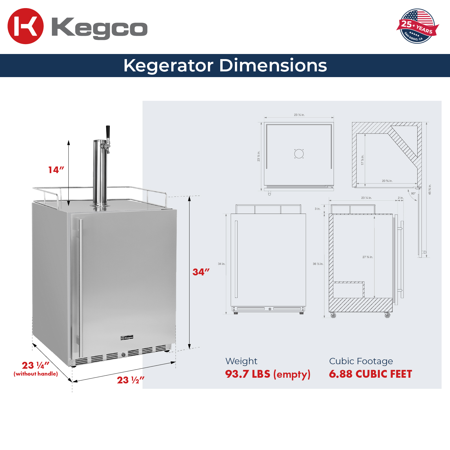 Kegco 24" Wide Single Tap All Stainless Steel Built-In Right Hinge Outdoor Nitro Coffee Kegerator