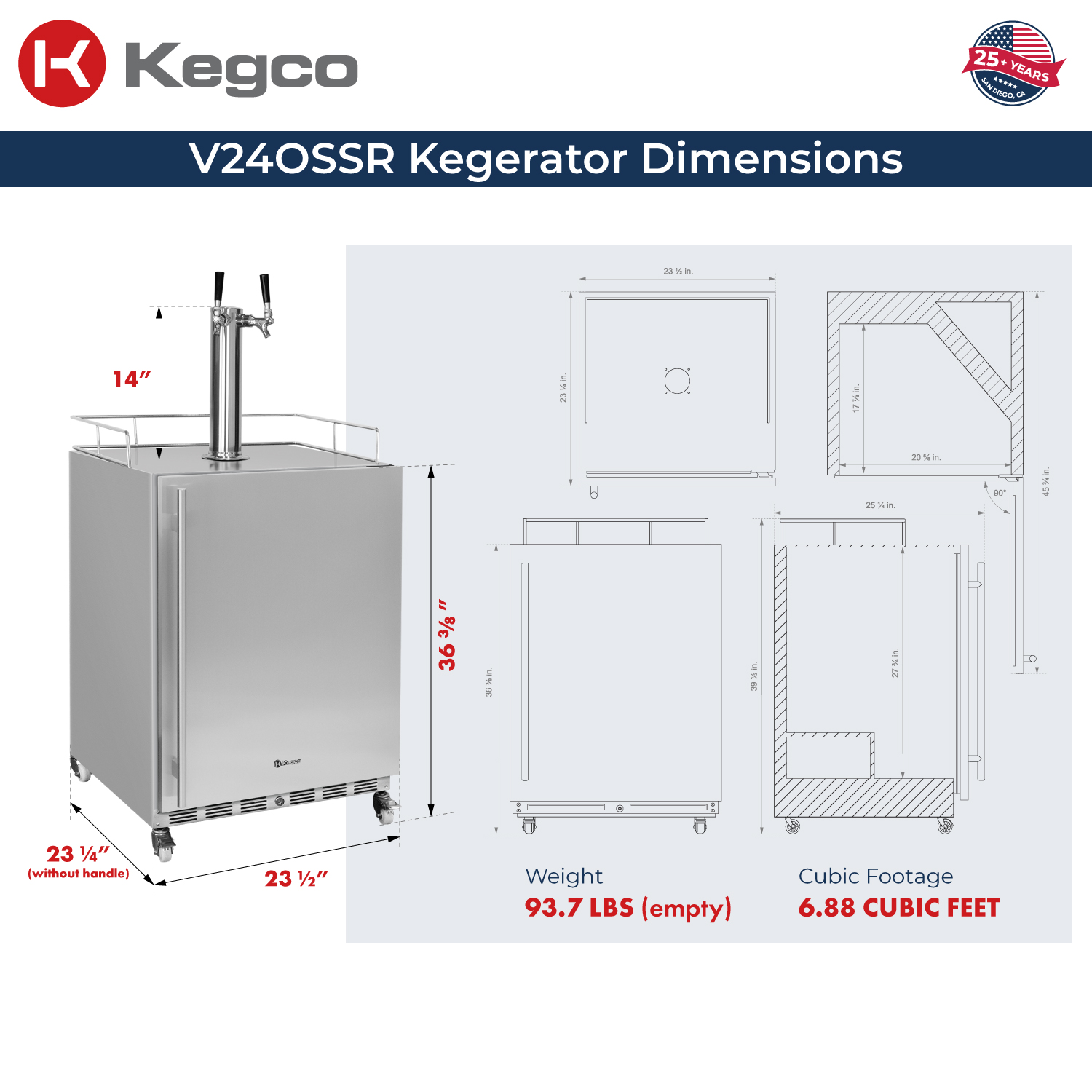 Engineered to fit full-size kegs, quarter slim kegs, or 5-gallon ball lock kegs - maximizing flexibility in tight spaces