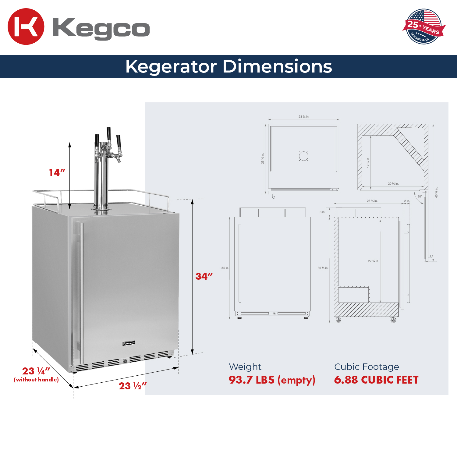Kegco 24" Wide Triple Tap All Stainless Steel Built-In Right Hinge Outdoor Nitro Coffee Kegerator