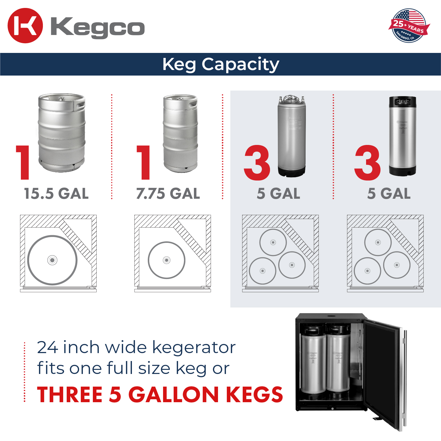 Engineered to fit full-size kegs, quarter slim kegs, or 5-gallon ball lock kegs - maximizing flexibility in tight spaces