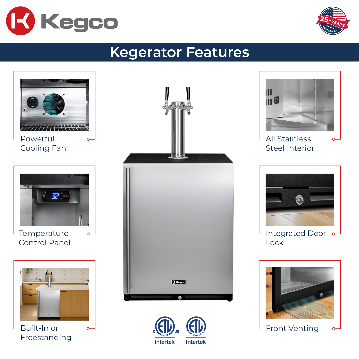 Kegco 24" Wide Dual Tap Stainless Steel Built-In Right Hinge Nitro Coffee Kegerator