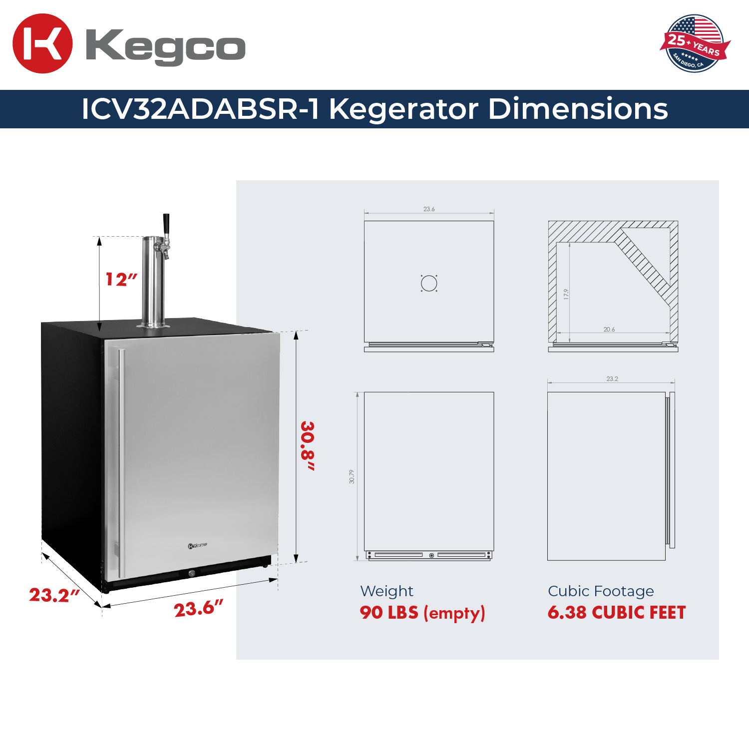 Kegco 24" Wide Single Tap Stainless Steel Built-In Right Hinge ADA Nitro Coffee Kegerator