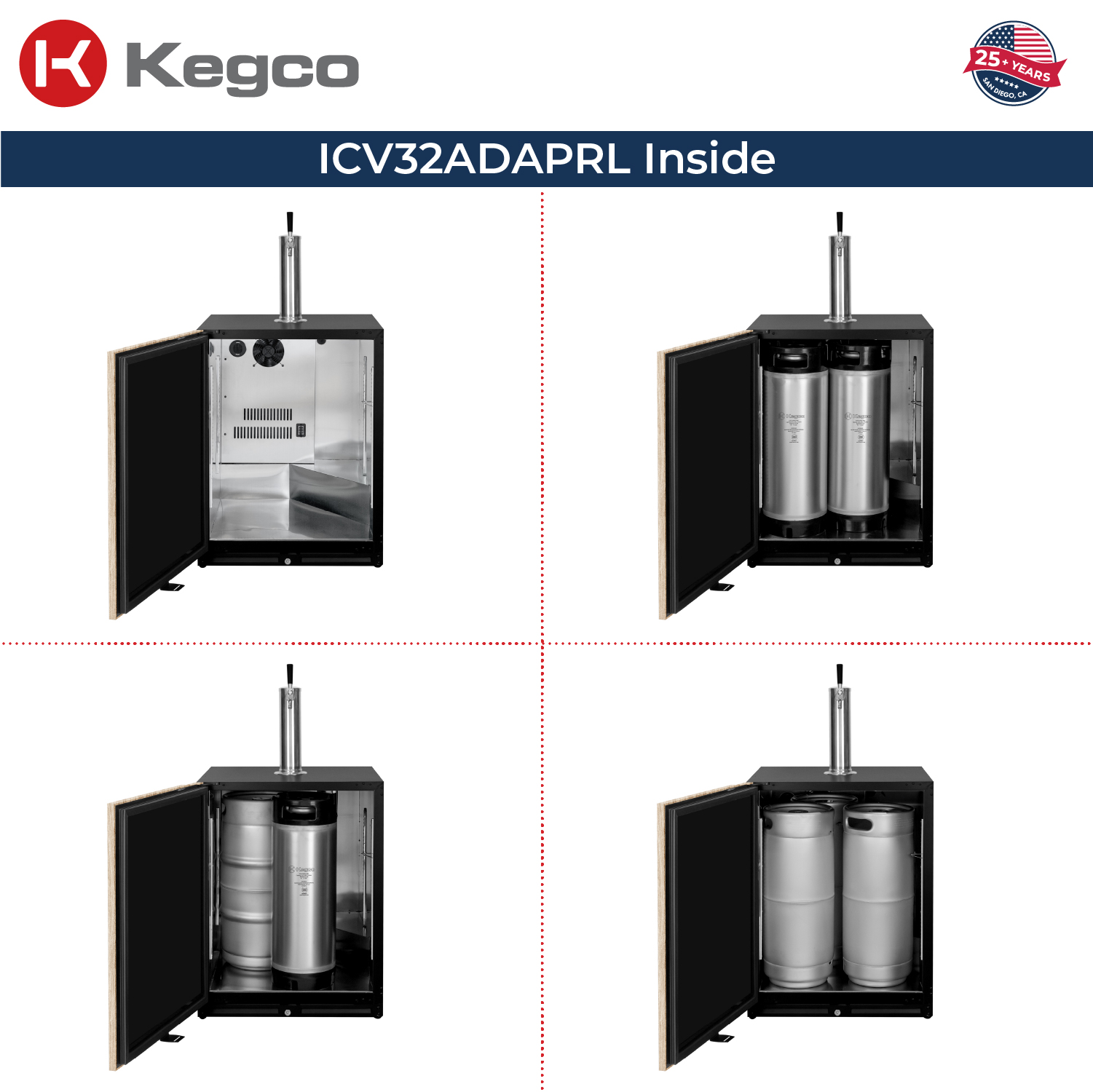 Kegco 24" Wide Single Tap Panel Ready Overlay Built-In Left Hinge ADA Nitro Coffee Kegerator