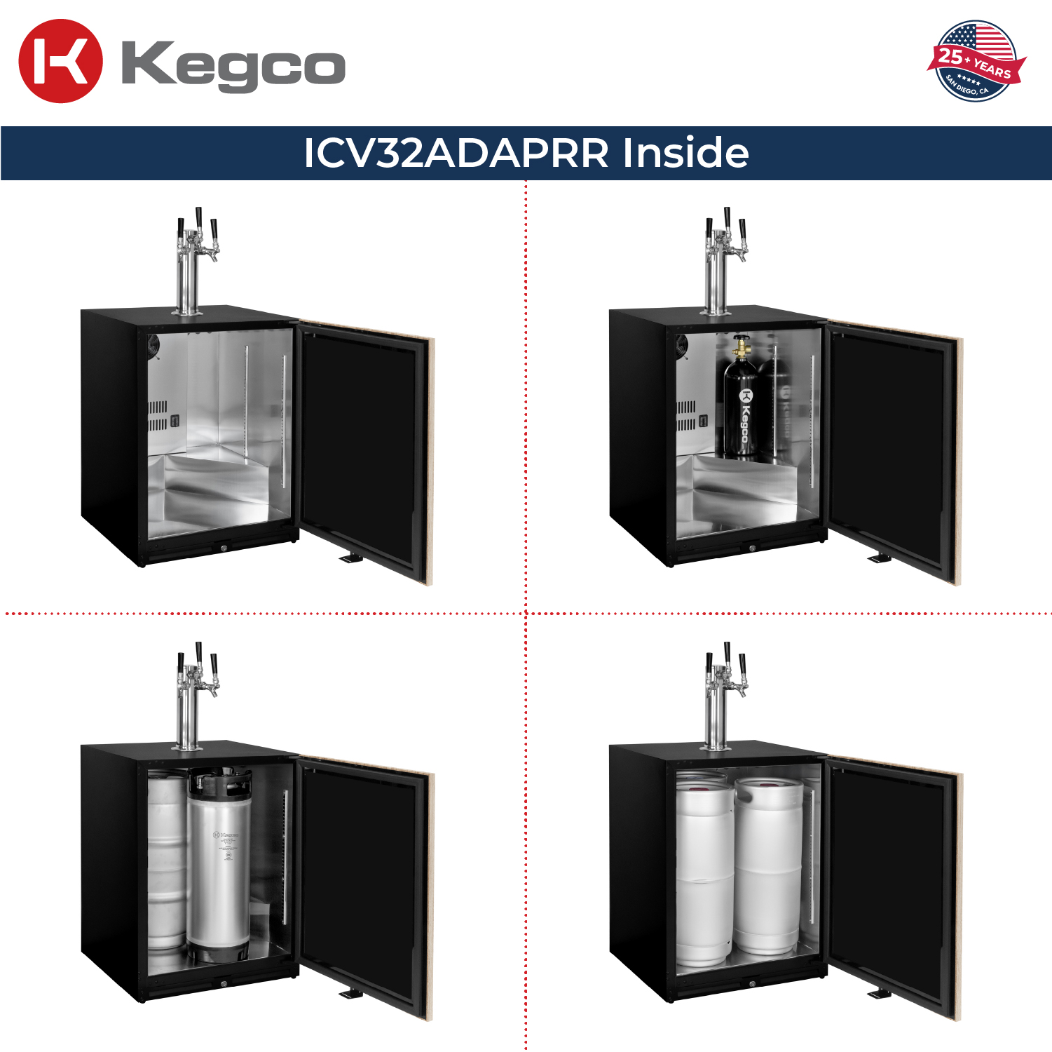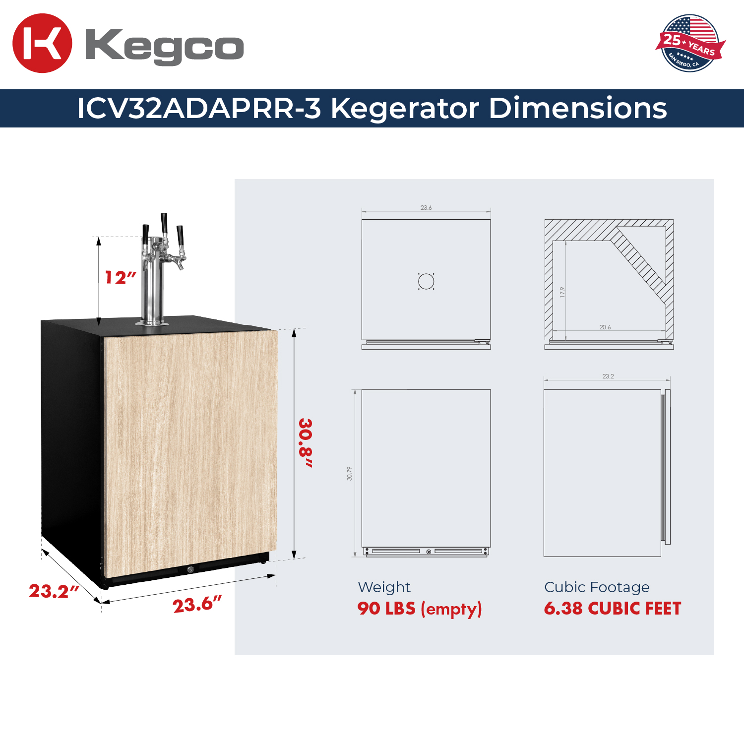 Kegco 24" Wide Triple Tap Panel Ready Overlay Built-In Right Hinge ADA Nitro Coffee Kegerator