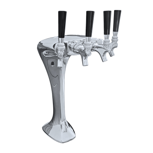 This draft beer tower is constructed of stainless steel with a chrome finish. It comes with four stainless steel beer faucets and is glycol cooled.
