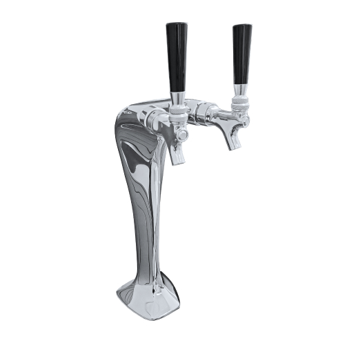 This draft beer tower is constructed of stainless steel with a chrome finish. It comes with two stainless steel beer faucets and is glycol cooled.