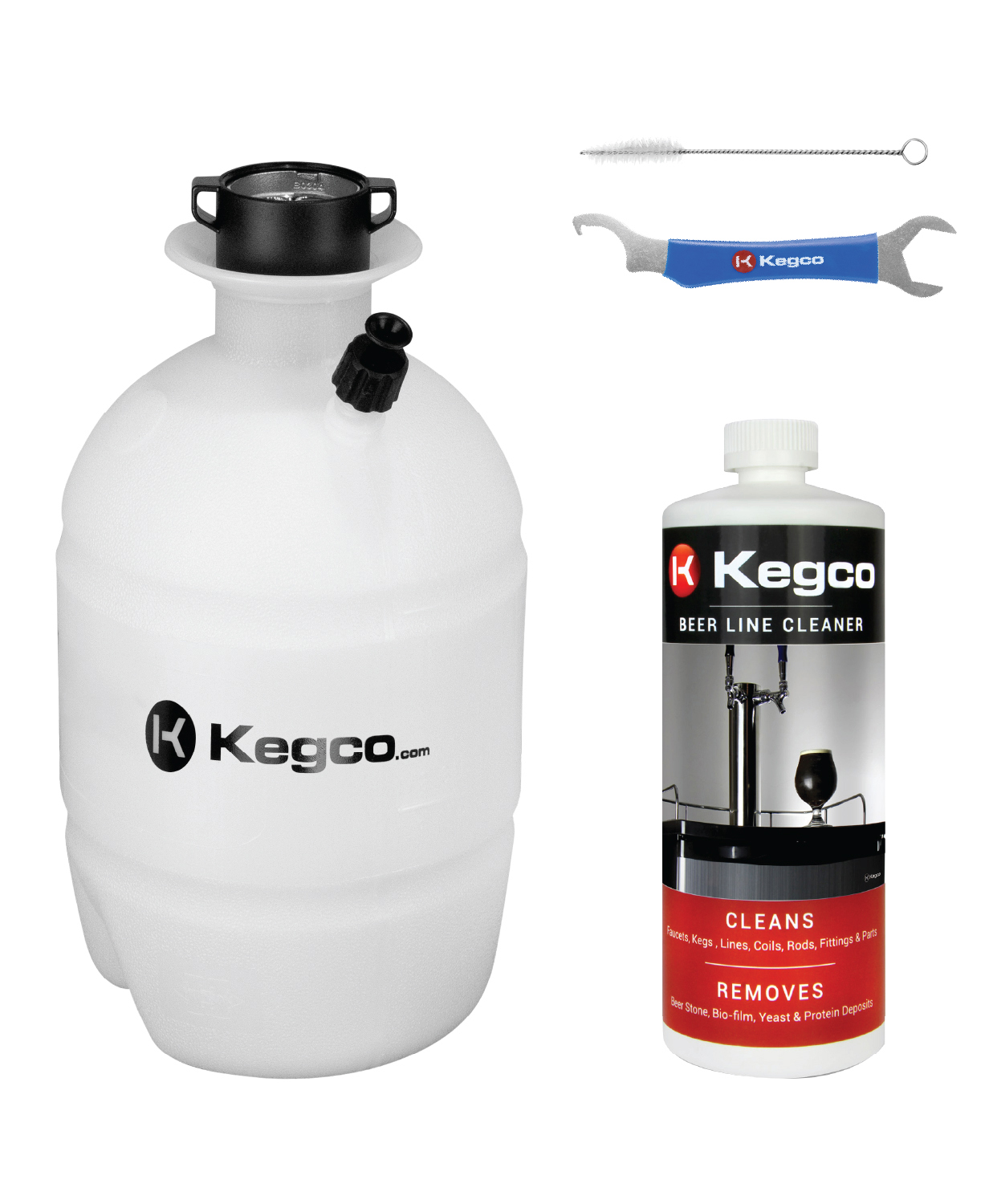 - Complete Cleaning Supply Pack. Comes with a full 32 oz. bottle of Kegco Beer Line Cleaner to keep your lines spotless longer.