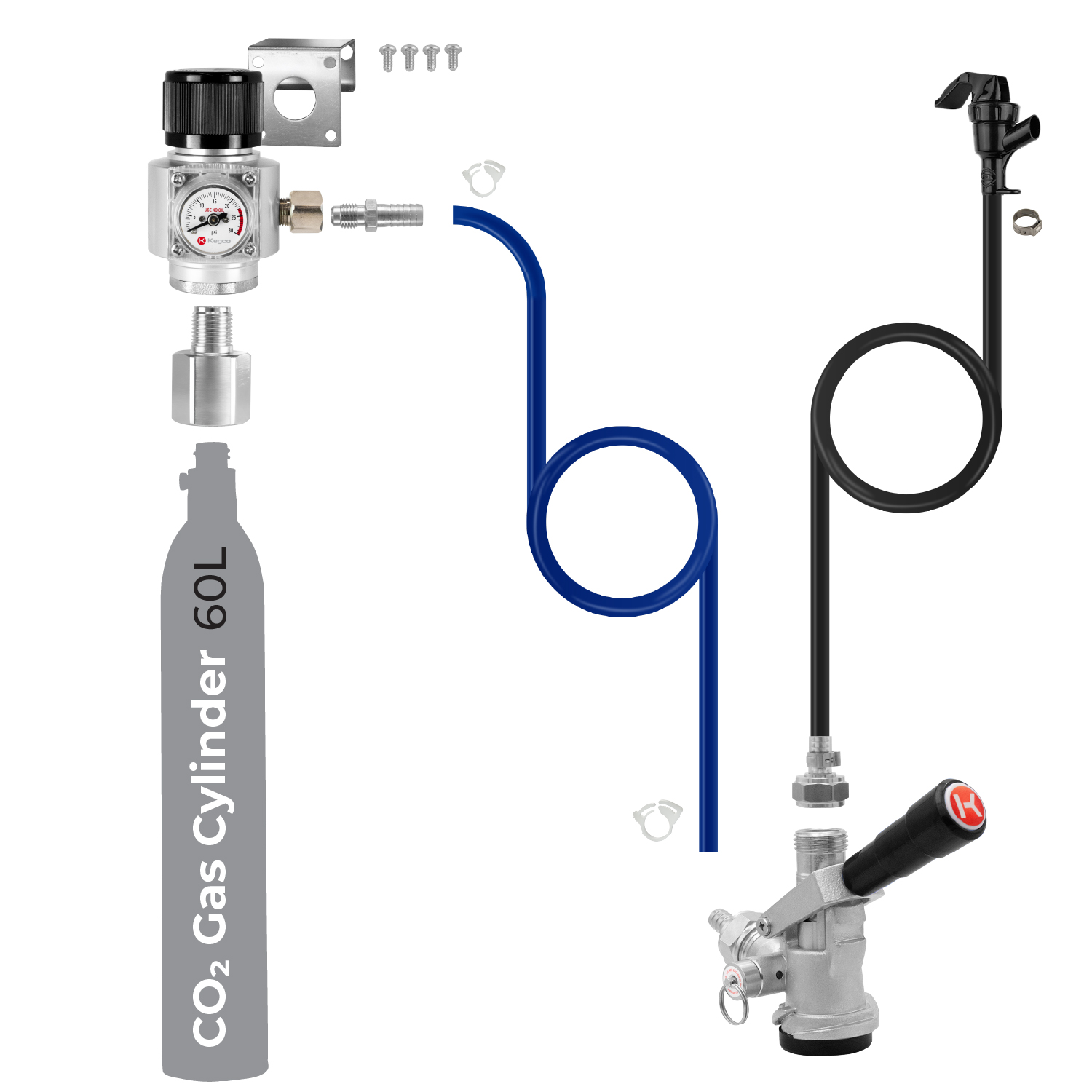 - Complete Dispensing Solution. Includes mini regulator, D coupler, picnic faucet, and gas line - everything you need to start pouring instantly.