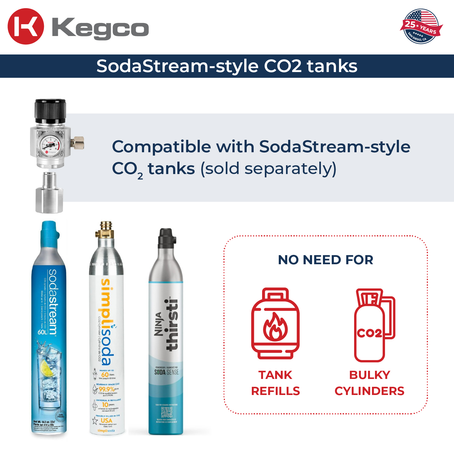 - Mini Regulator Convenience. Compatible with SodaStream-style CO2 tanks (sold separately), eliminating the need for tank refills or bulky cylinders.
