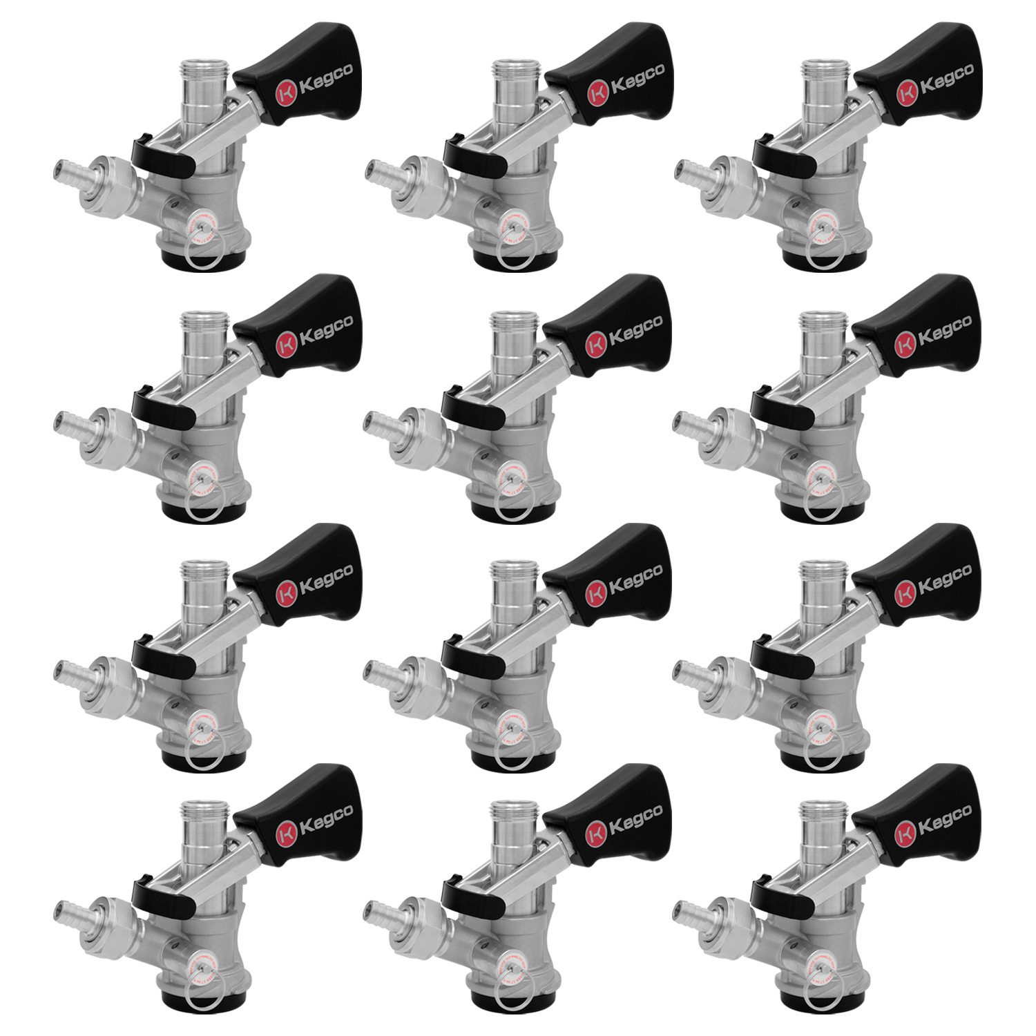 Kegco Set of 12 - Beer Keg Taps Couplers S System Ergonomic Lever Handle Stainless Steel Probe