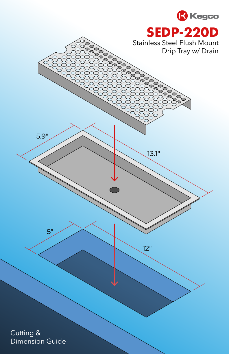Kegco Stainless Steel Flush Mount Drip Tray w/ Drain