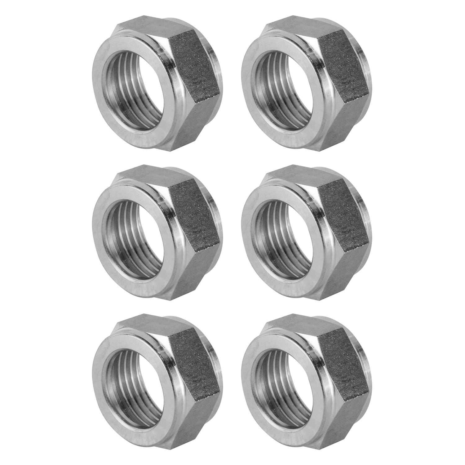 Set of 6 stainless steel hex nuts. 5/8" BSP (British Straight Pipe) thread. Connect to beer industry standard couplers and shanks.