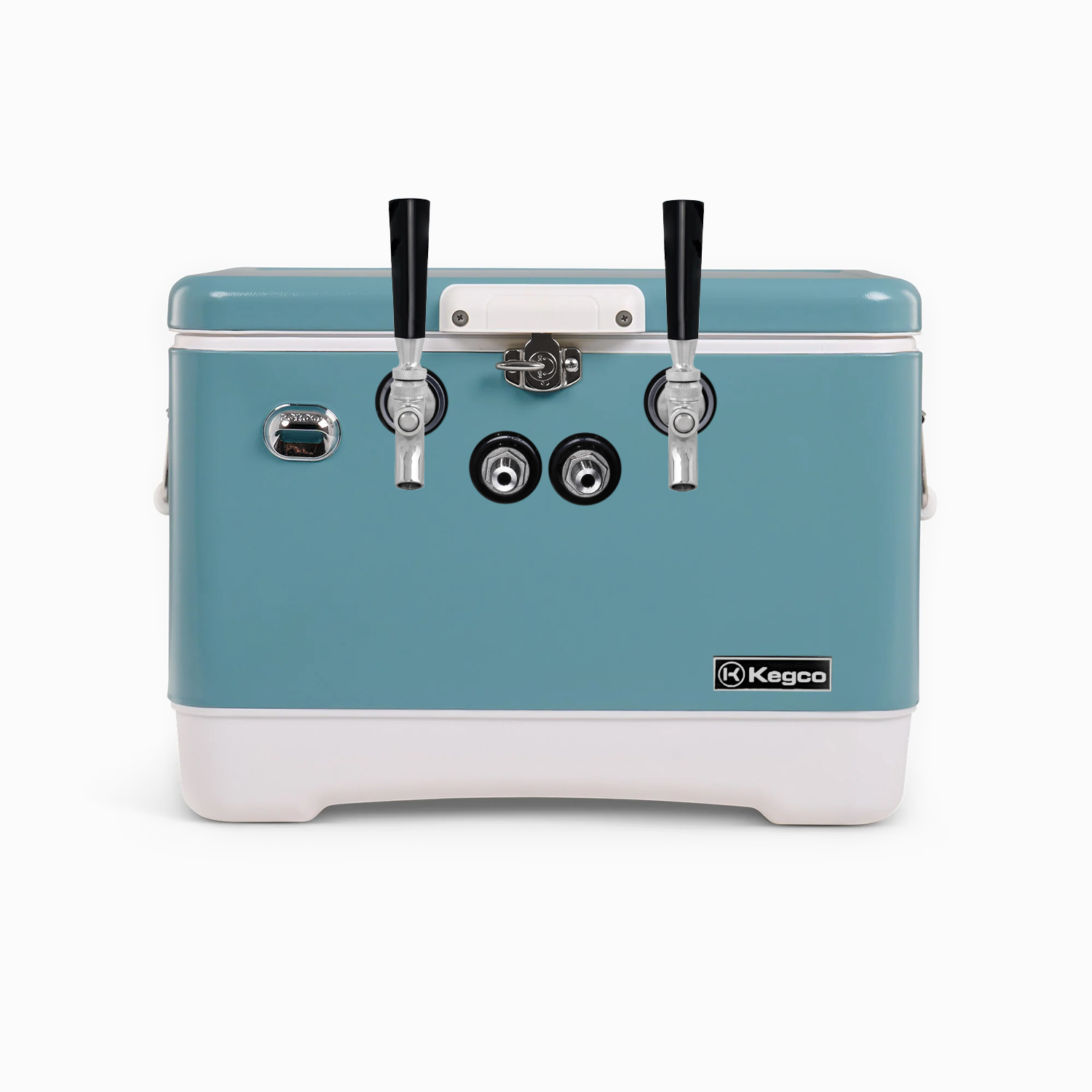 Kegco Blue/White 54-Quart 2-Tap Metal Jockey Box - Front-Mounted Shanks & Faucets