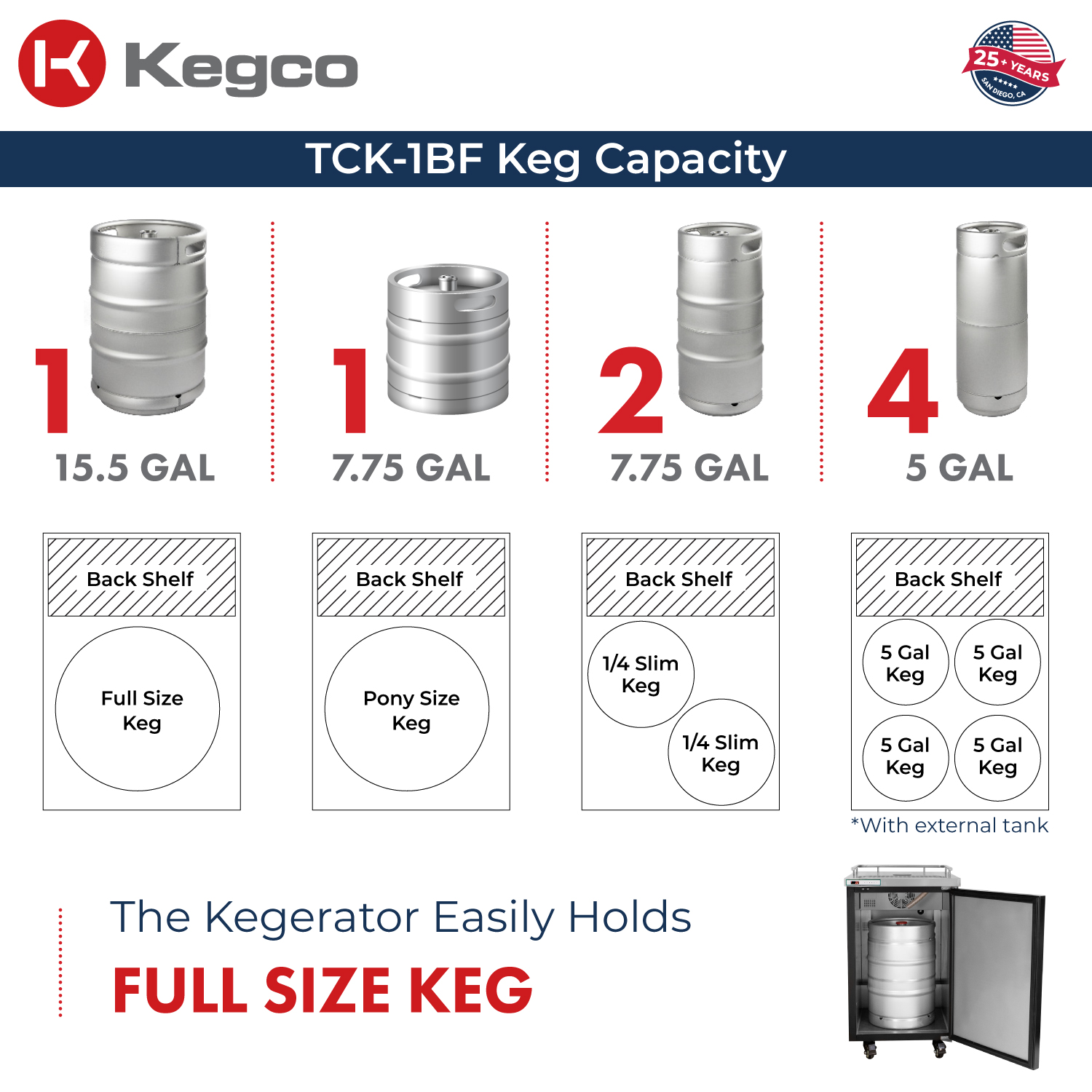 Spacious interior can easily hold any full-size keg or up to four 5 gallon D system and Cornelius ball lock home-brew kegs, allowing you to dispense more than one type of beer at a time.