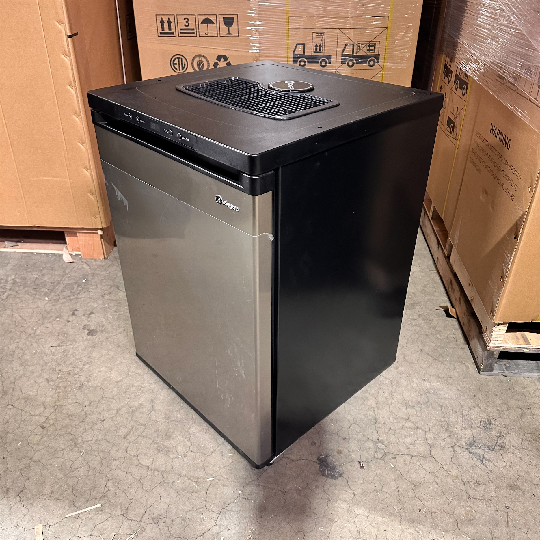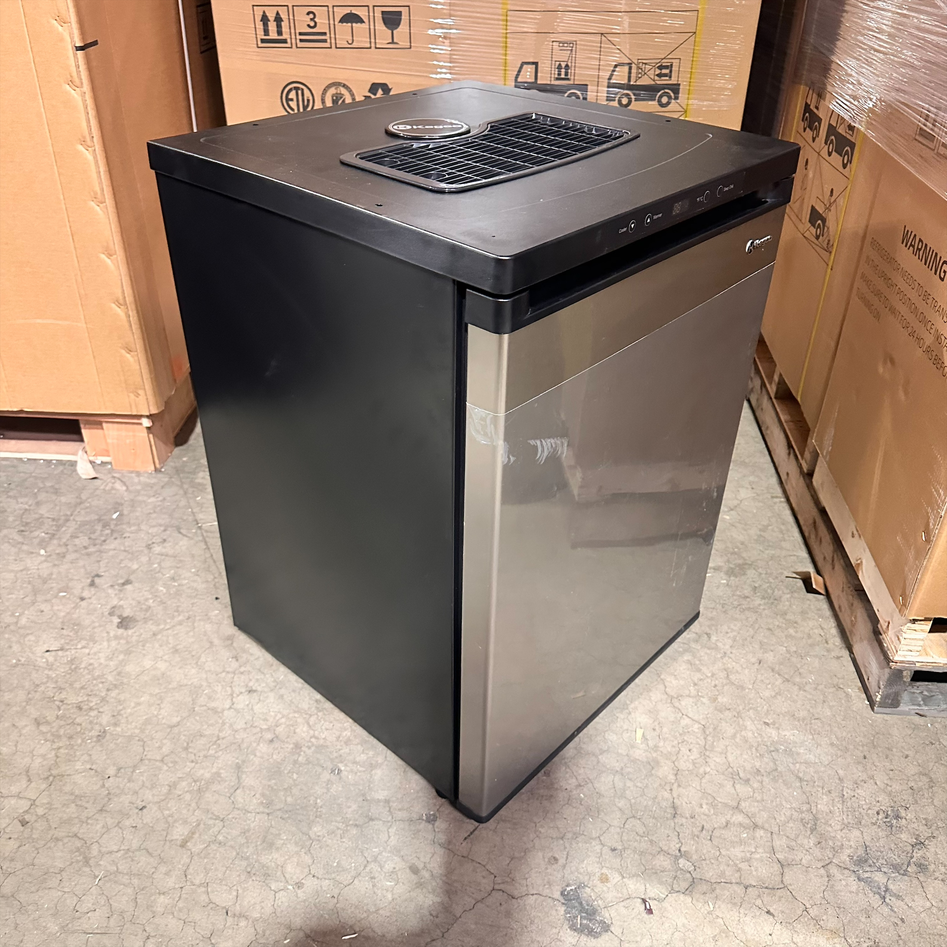 This unit was inspected to ensure it includes all the standard parts. It does not include the manual, but that can be downloaded under INFO & GUIDES. It is in good physical condition with the exception of scratches on the keg plate and 2 small dents on the left inside wall. (See Final Photos). Damage does not affect the performance of the unit. Kegerator has been tested to ensure that it is in good working condition with a temperature that was verified down to 35°F on the lowest setting.