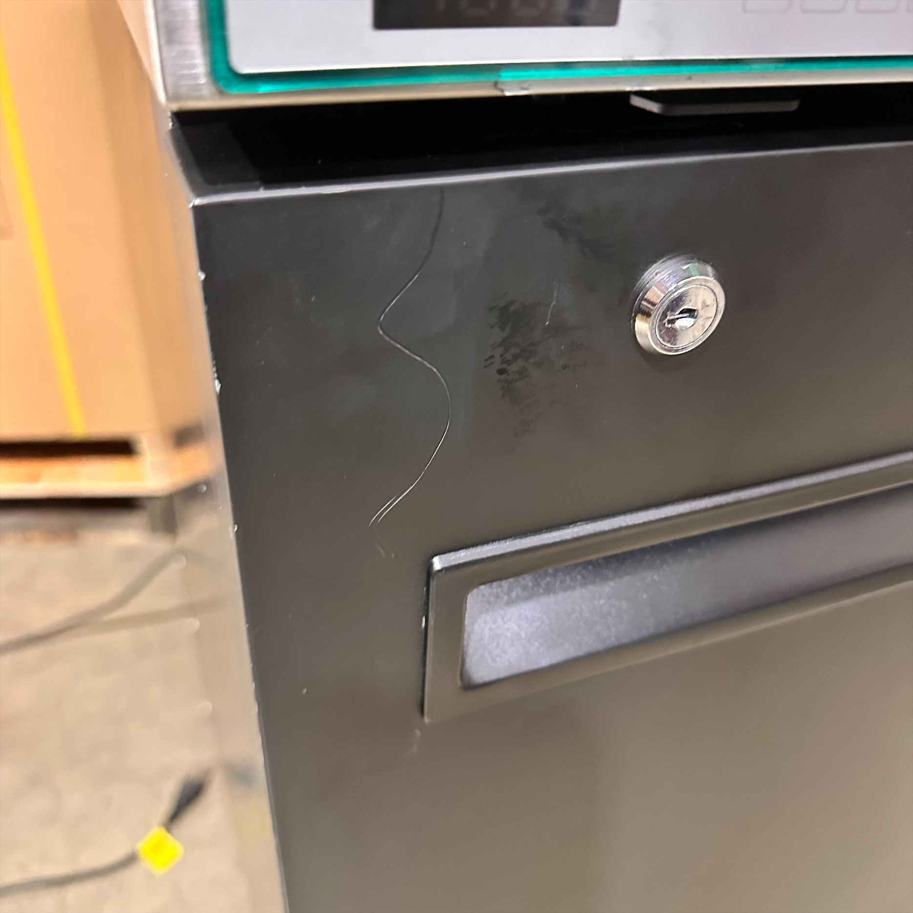 It's in good physical condition with exception of scratches and dents on the left, right, top, back, door and cord parts of the unit. (see final photos).