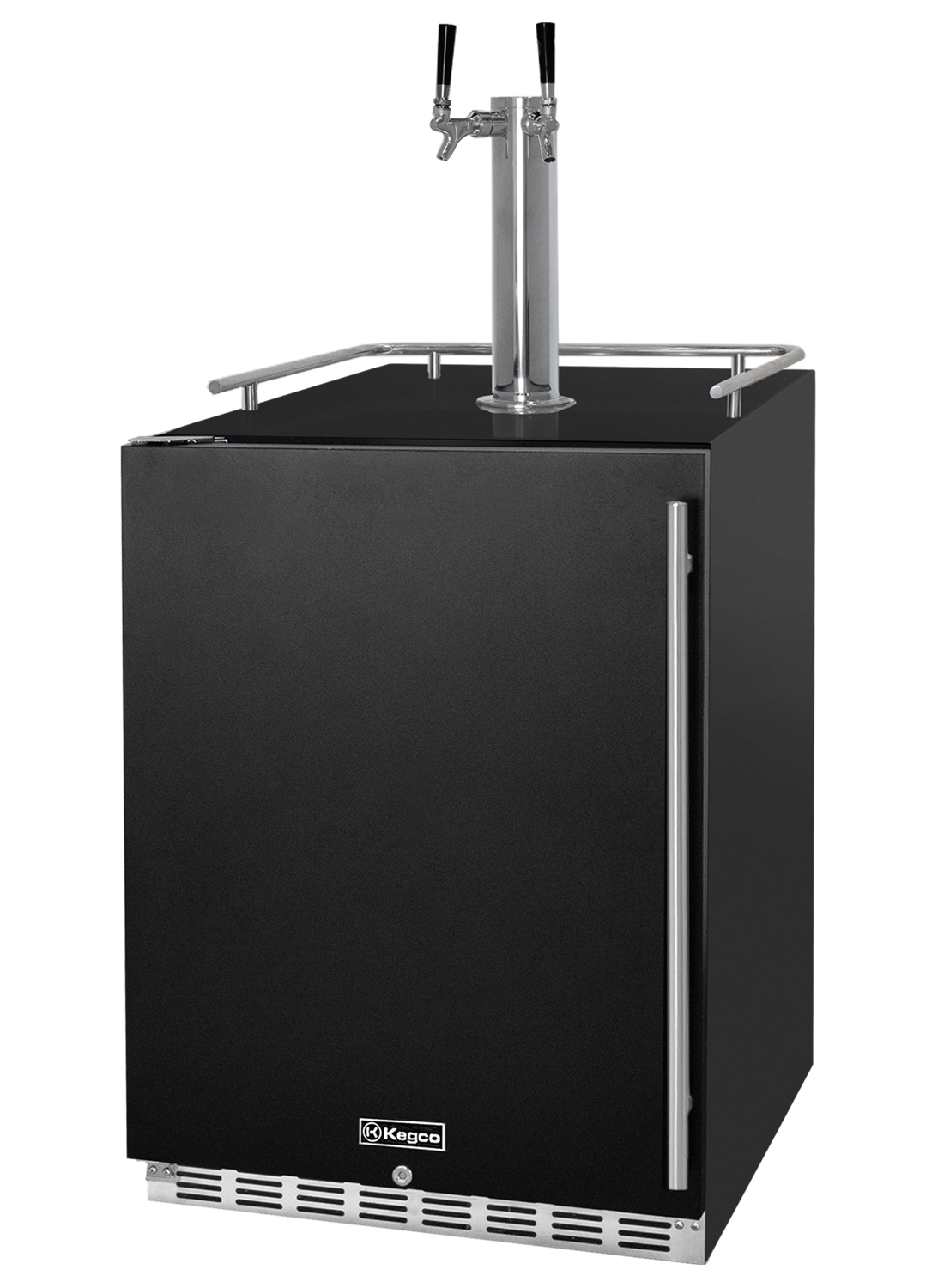 The front-venting design allows you to build this kegerator into cabinetry for a seamless look that is easy to maintain and provides more floor space. A stainless steel guard rail is included to prevent glasses or mugs from sliding off the top in freestanding applications.