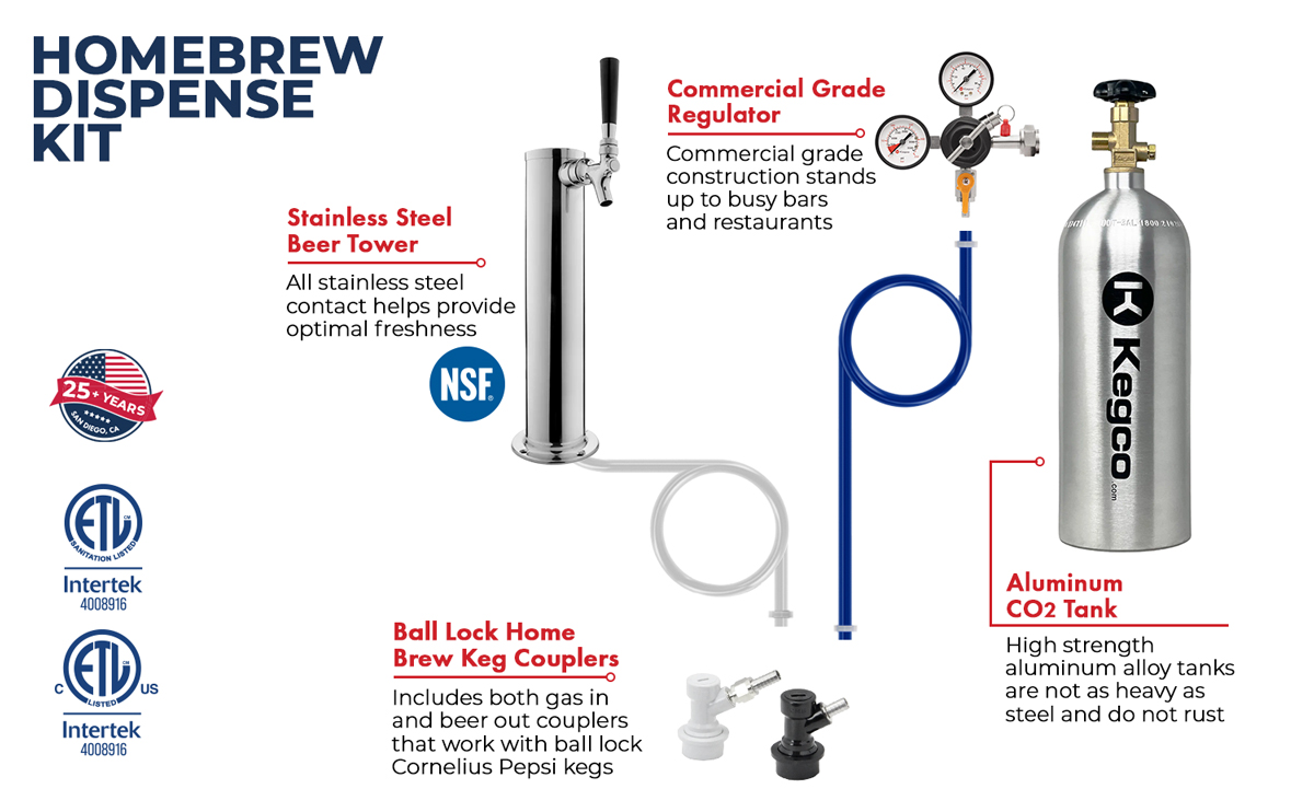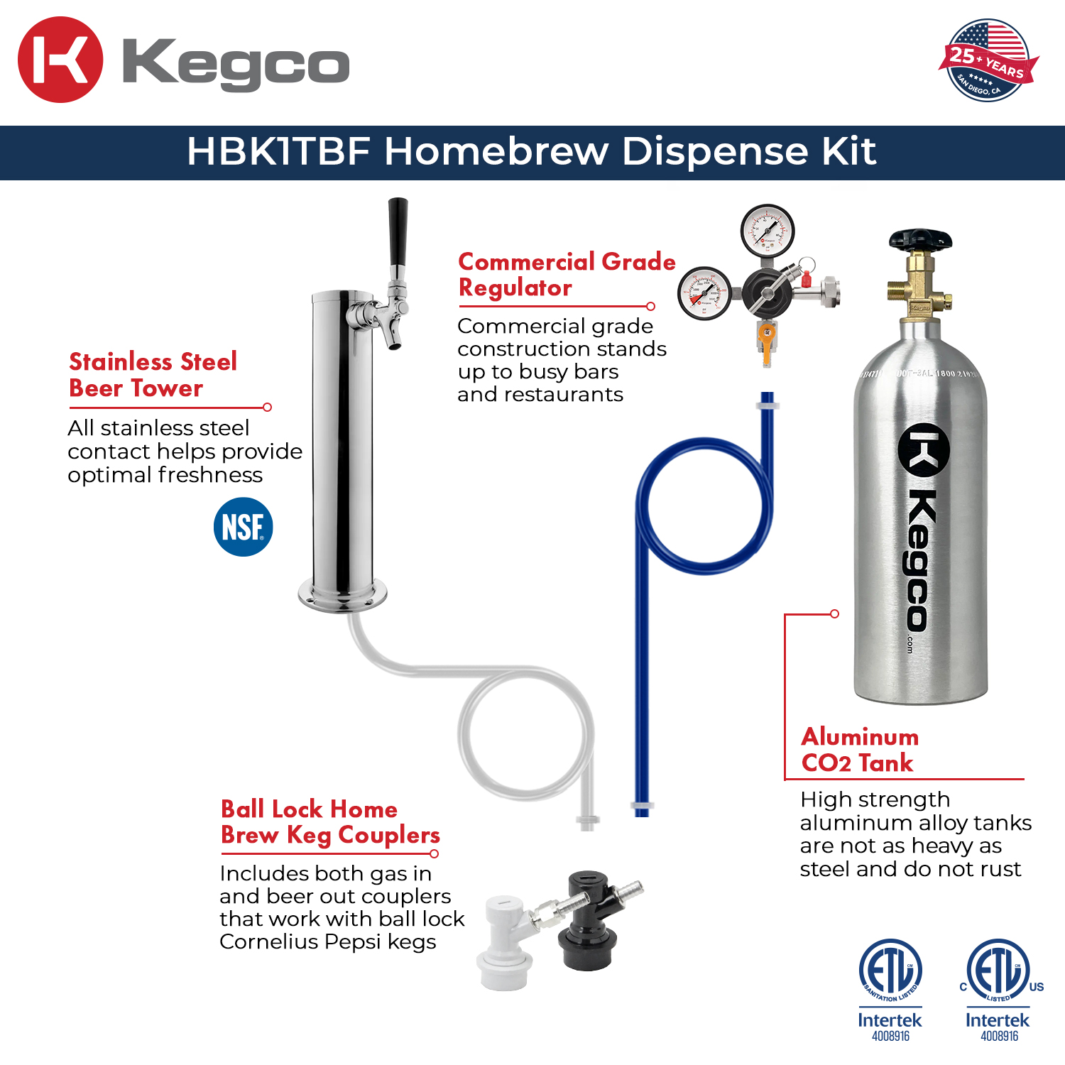 Includes a single faucet draft tower and a complete ball lock dispense kit