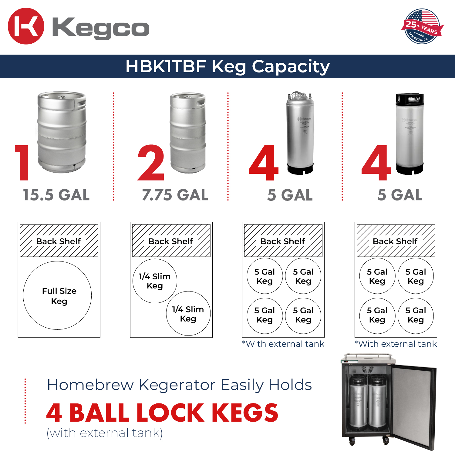 A knockout for external tank installment allows for more interior space for your kegs. Minimize internal clutter and maximize your kegerator space for four 5 gal kegs. The removable tank retainer holds CO2 or Nitrogen tanks up to 5 lbs.