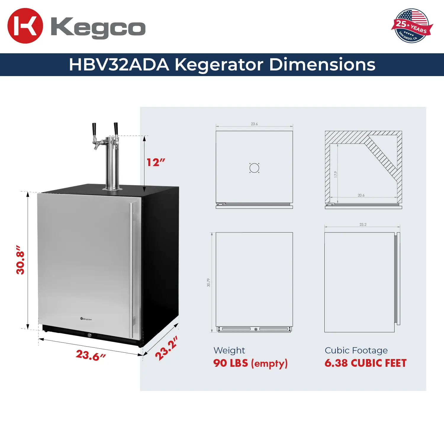 Kegco 24" Wide Dual Tap Stainless Steel Built-In Left Hinge ADA Homebrew Kegerator
