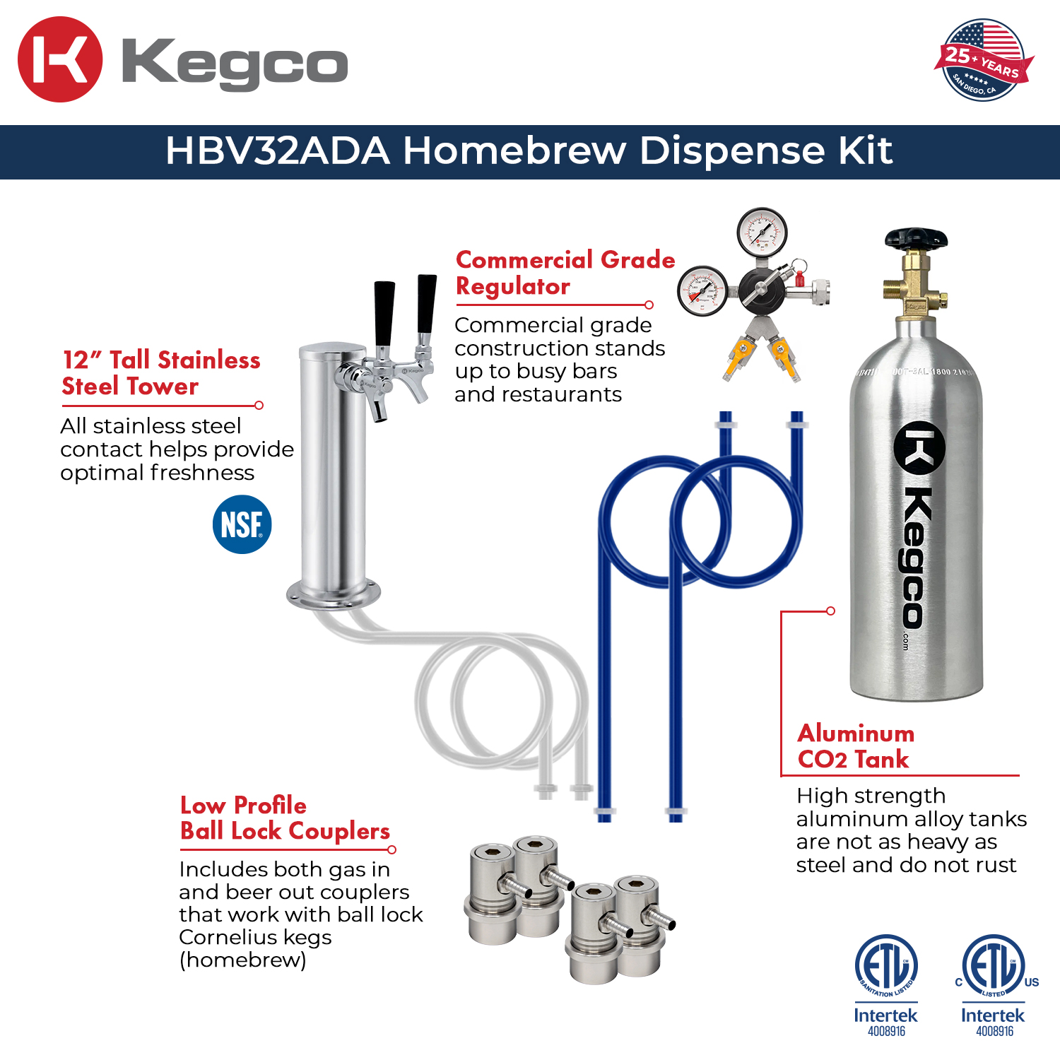 Comes with a set of ball lock barb connectors that meet the unique requirements of dispensing home brew beer. Includes both a gas in and beer out coupler that works with ball lock Cornelius Pepsi kegs.
