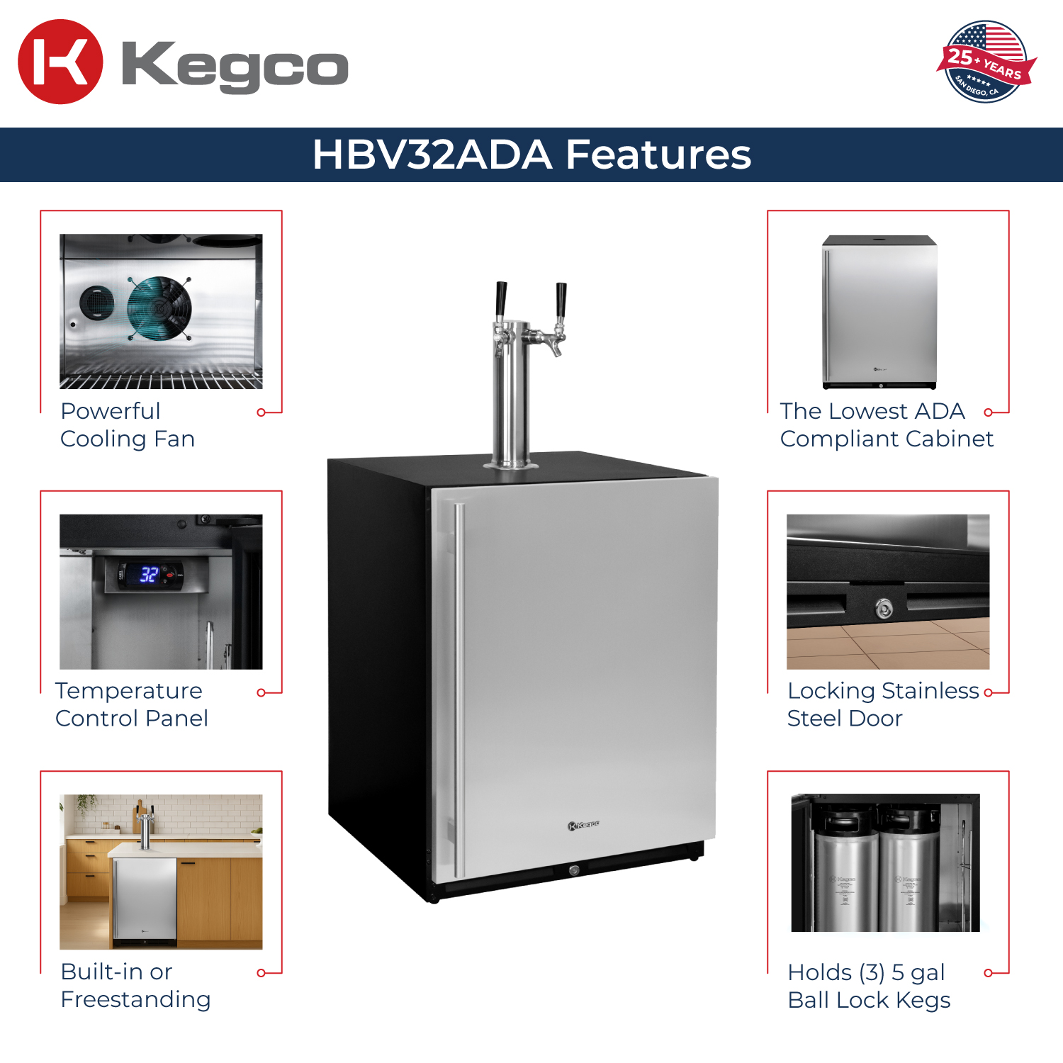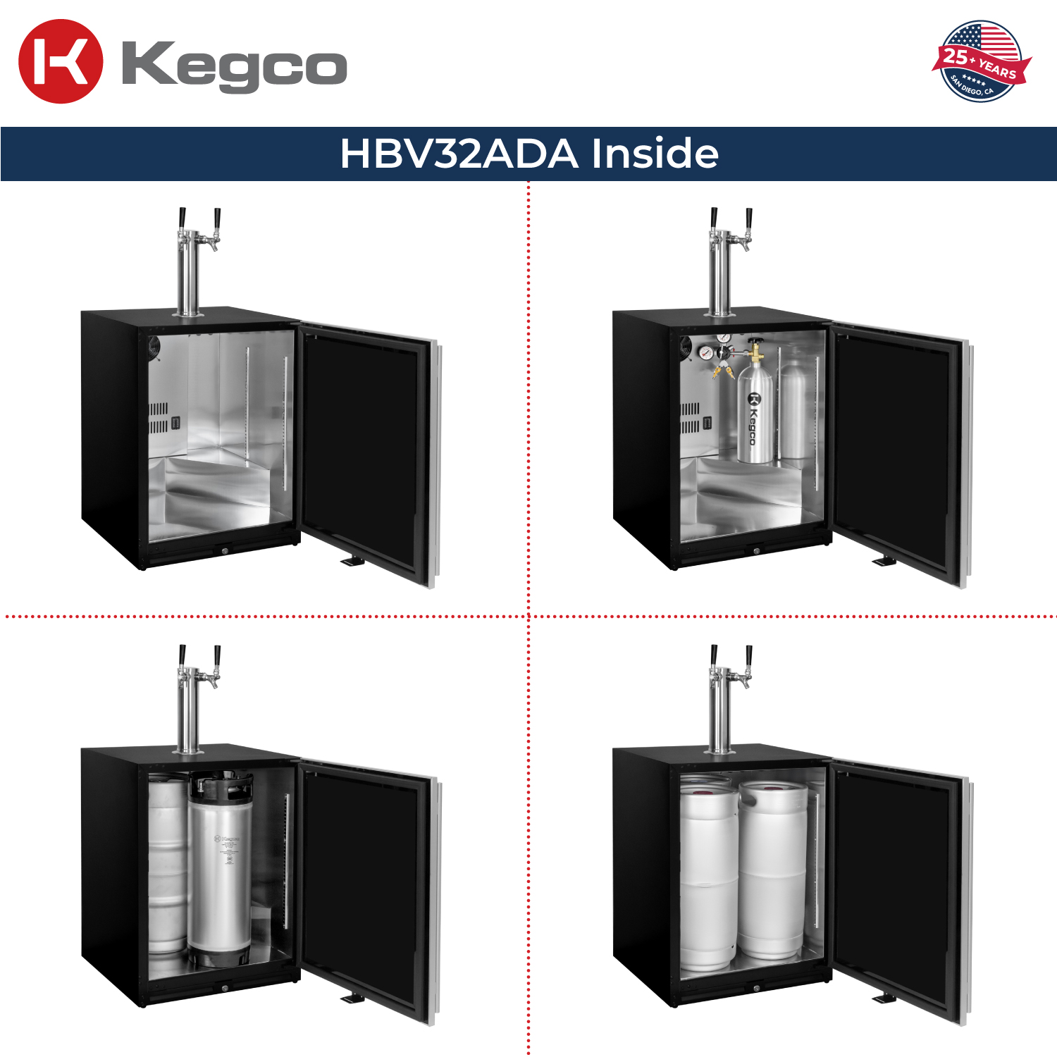 Kegco 24" Wide Dual Tap Stainless Steel Built-In Right Hinge ADA Homebrew Kegerator