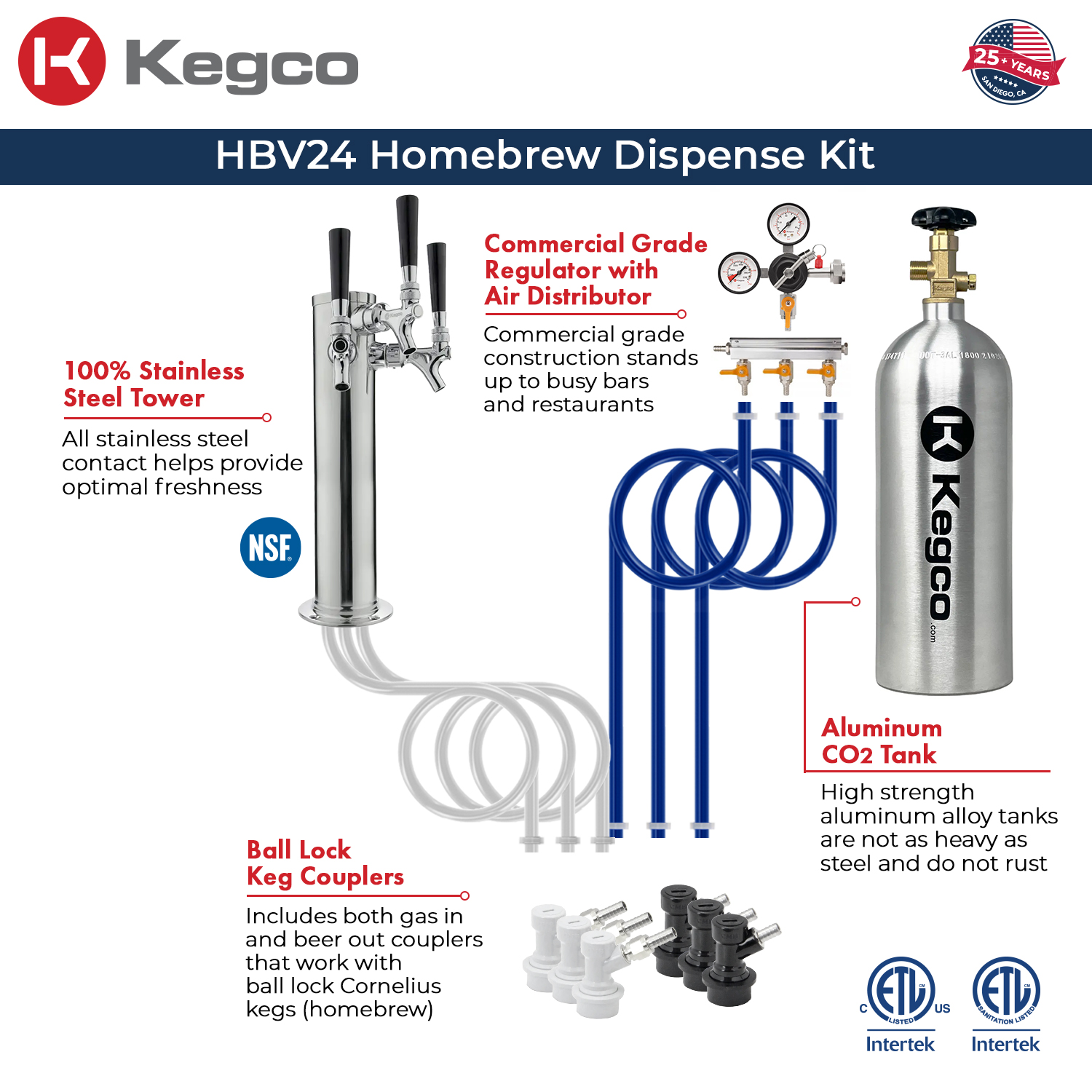 Dispense System includes tower, regulator, homebrew keg coupler, and CO2 tank
