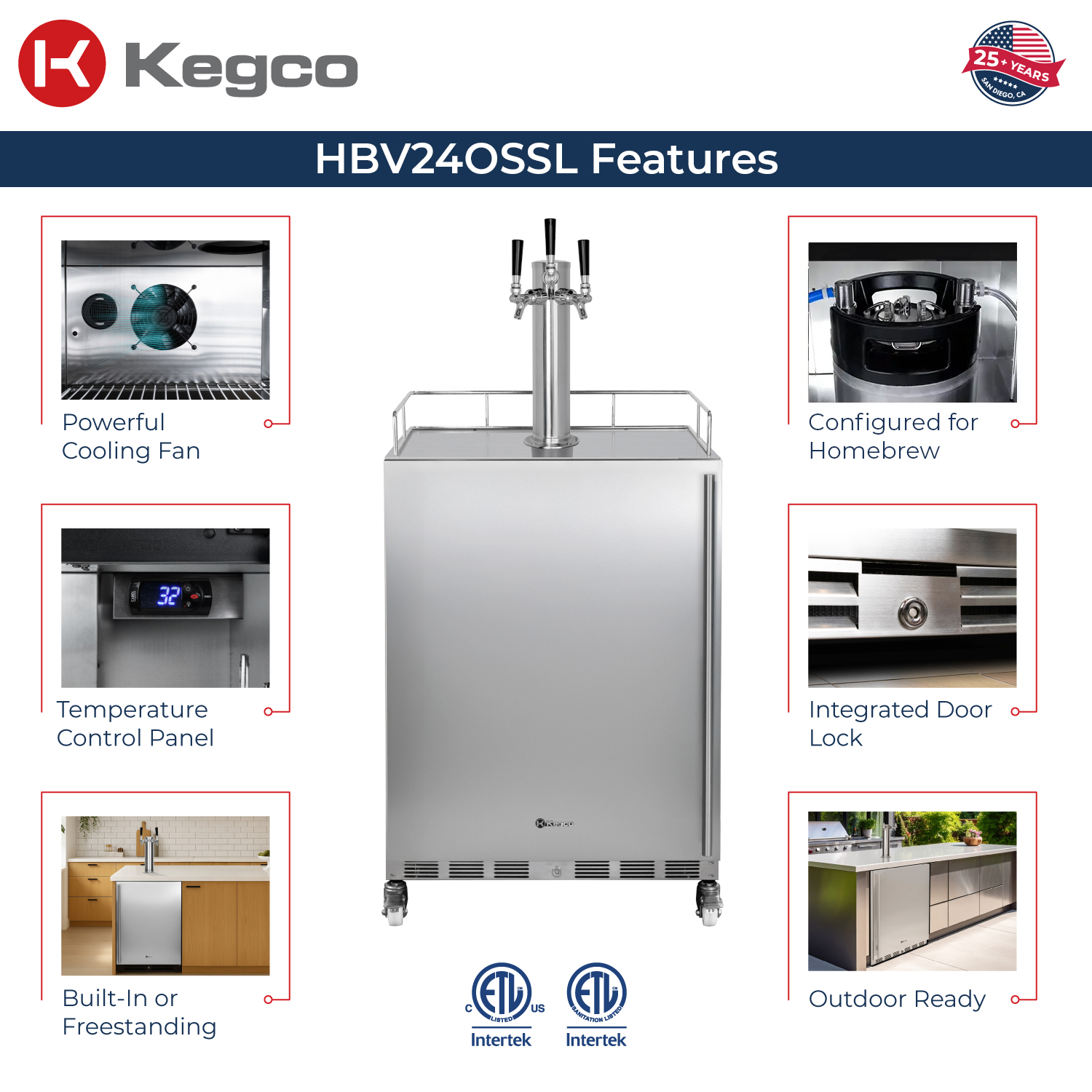 Kegco 24" Wide Outdoor Homebrew Triple Tap All Stainless Steel Built-In Left Hinge Kegerator $3,130.00 SAVE 45% - $1408.50 $1,721.50