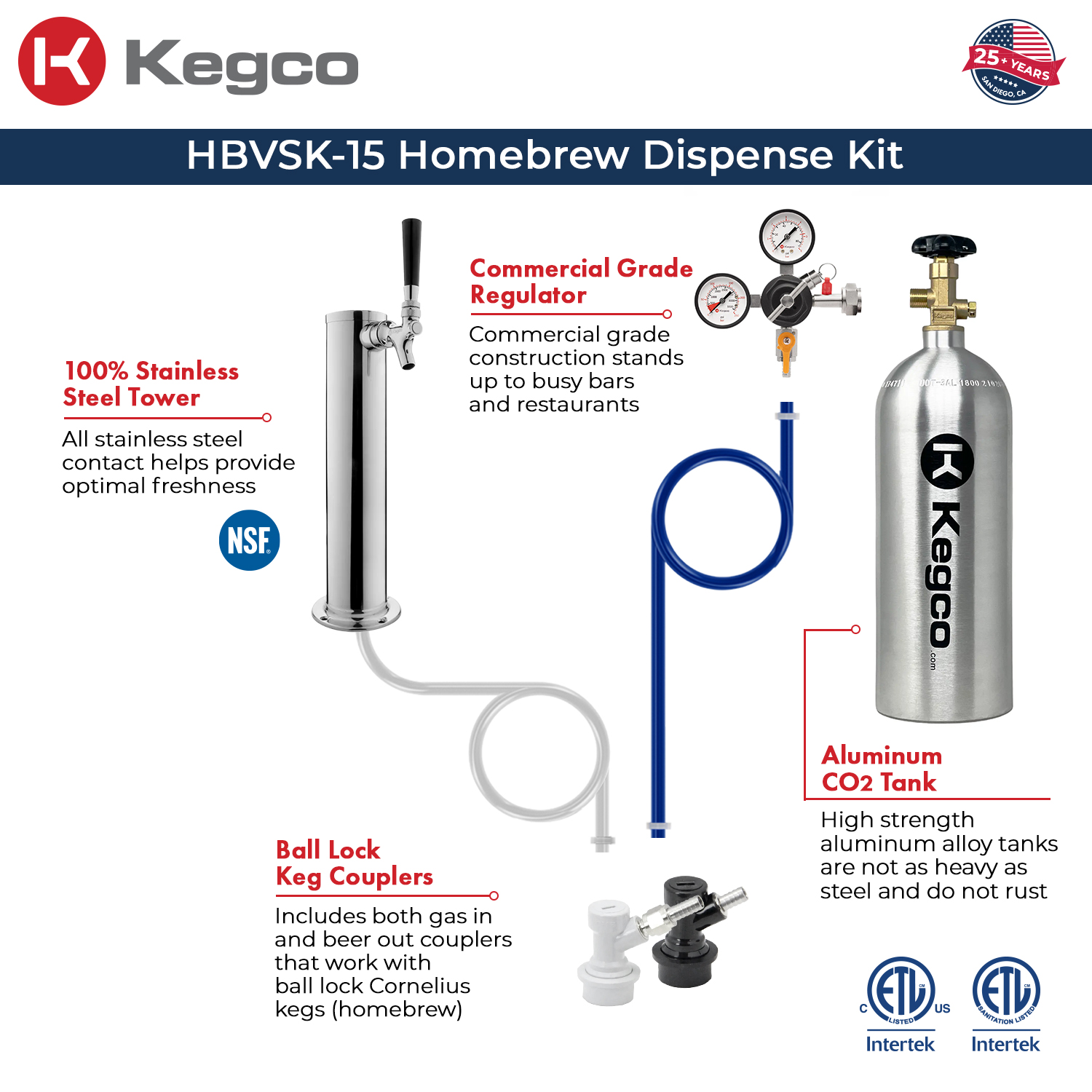 Comes with a set of ball lock barb connectors that meet the unique requirements of dispensing home brew beer. Includes both a gas in and beer out coupler that works with ball lock Cornelius Pepsi kegs.