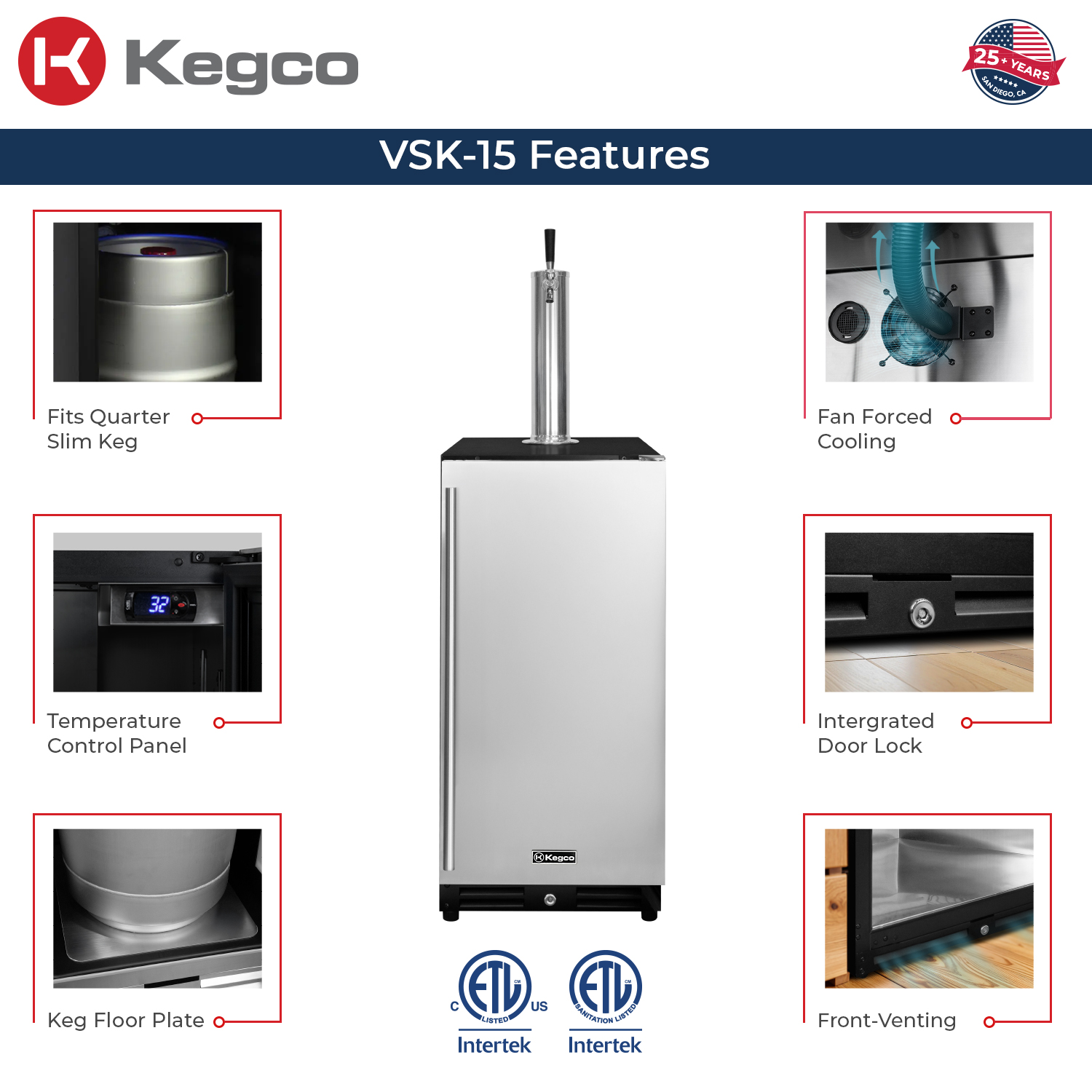 Kegco 15" Wide Undercounter Homebrew Stainless Steel Door Built-In Right Hinge Kegerator