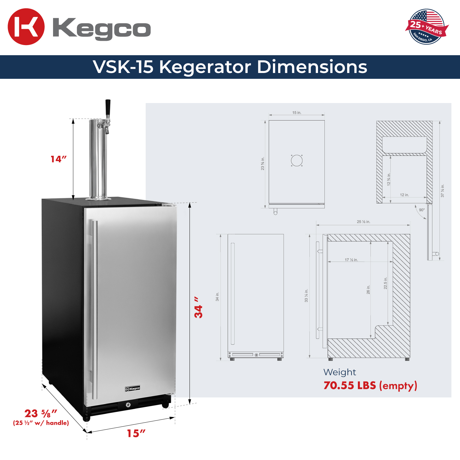 Features a convenient 15" wide undercounter design that makes it the perfect built-in kegerator