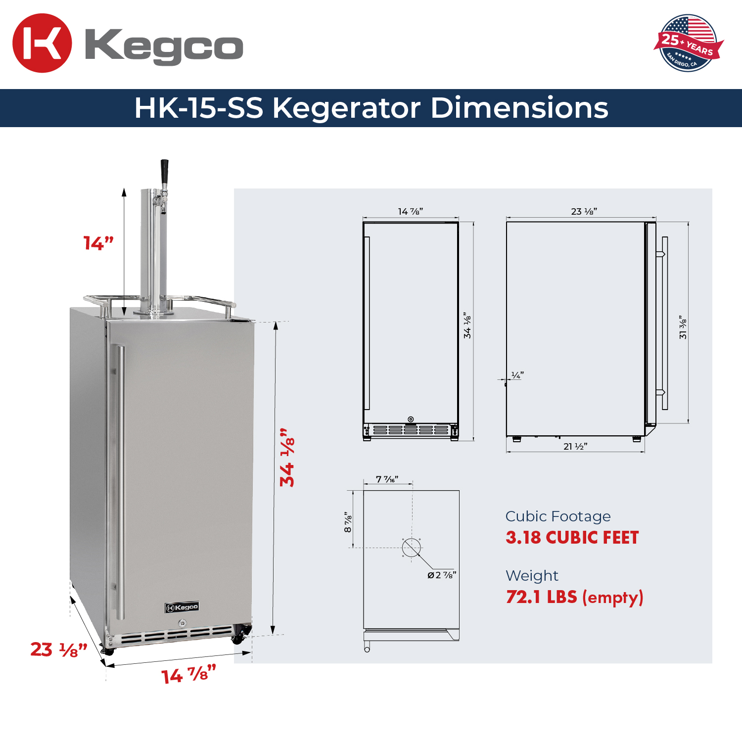 Kegco 15" Wide Outdoor Single Tap Stainless Steel Built-In Commercial Kegerator