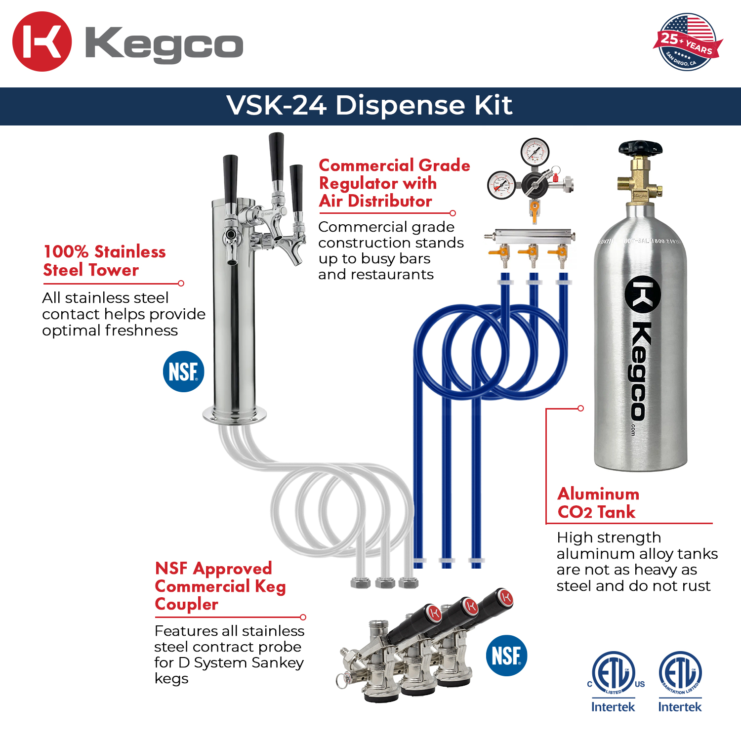 Premium dispense components include a 100% stainless steel contact tower, a premium dual gauge regulator and a corrosion-resistant CO2 tank
