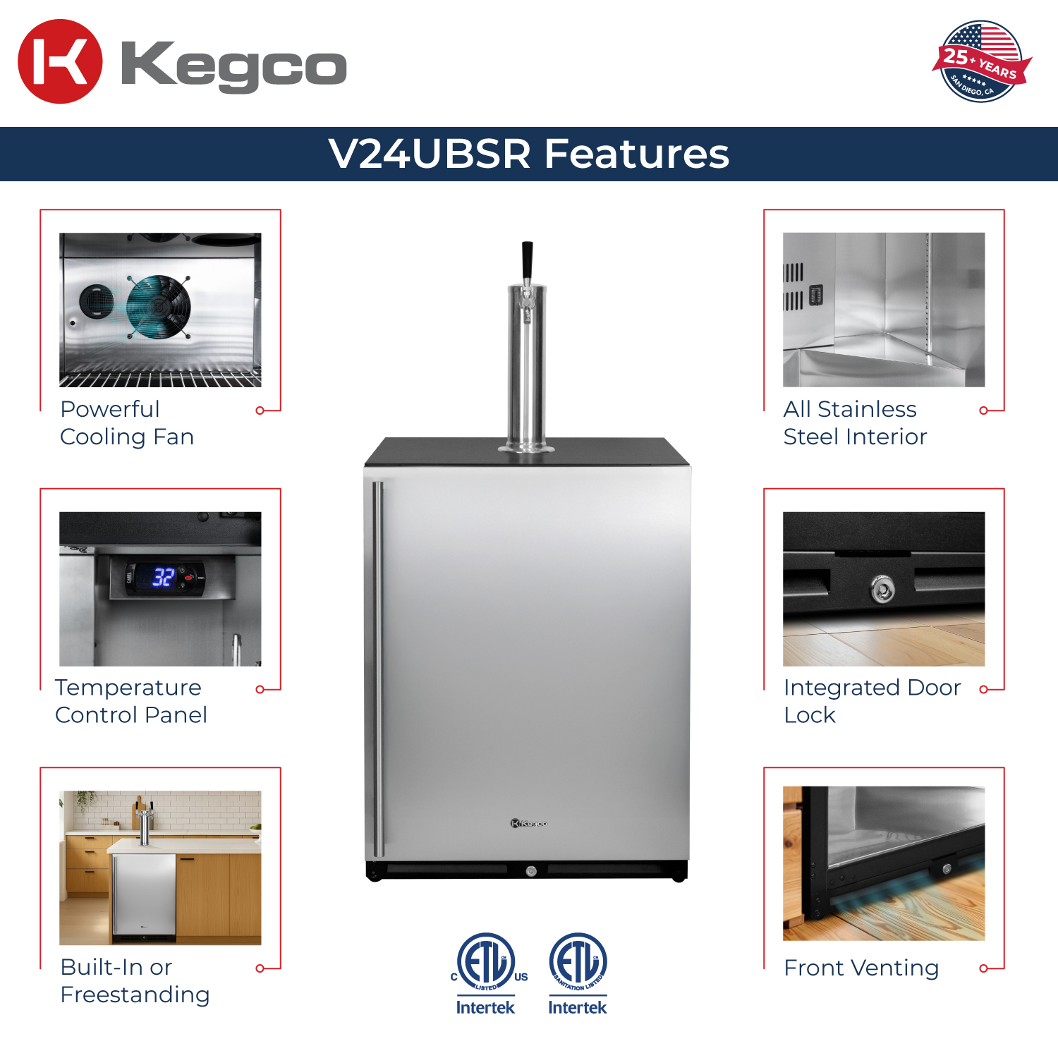 Kegco 24" Wide Single Tap Stainless Steel Built-In Right Hinge Kegerator