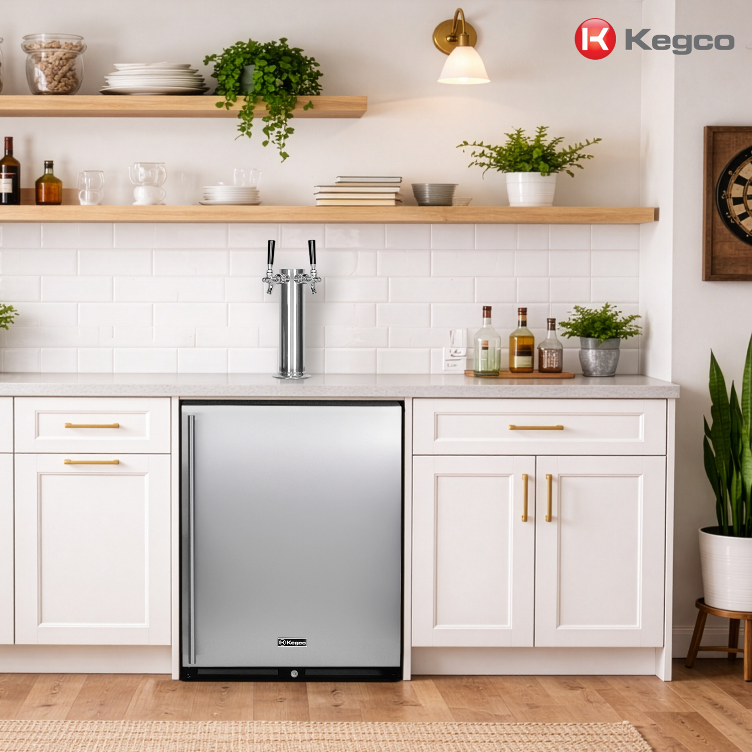 24 inch wide kegerator can be built in undercounter to provide a seamless look in your home bar or kitchen