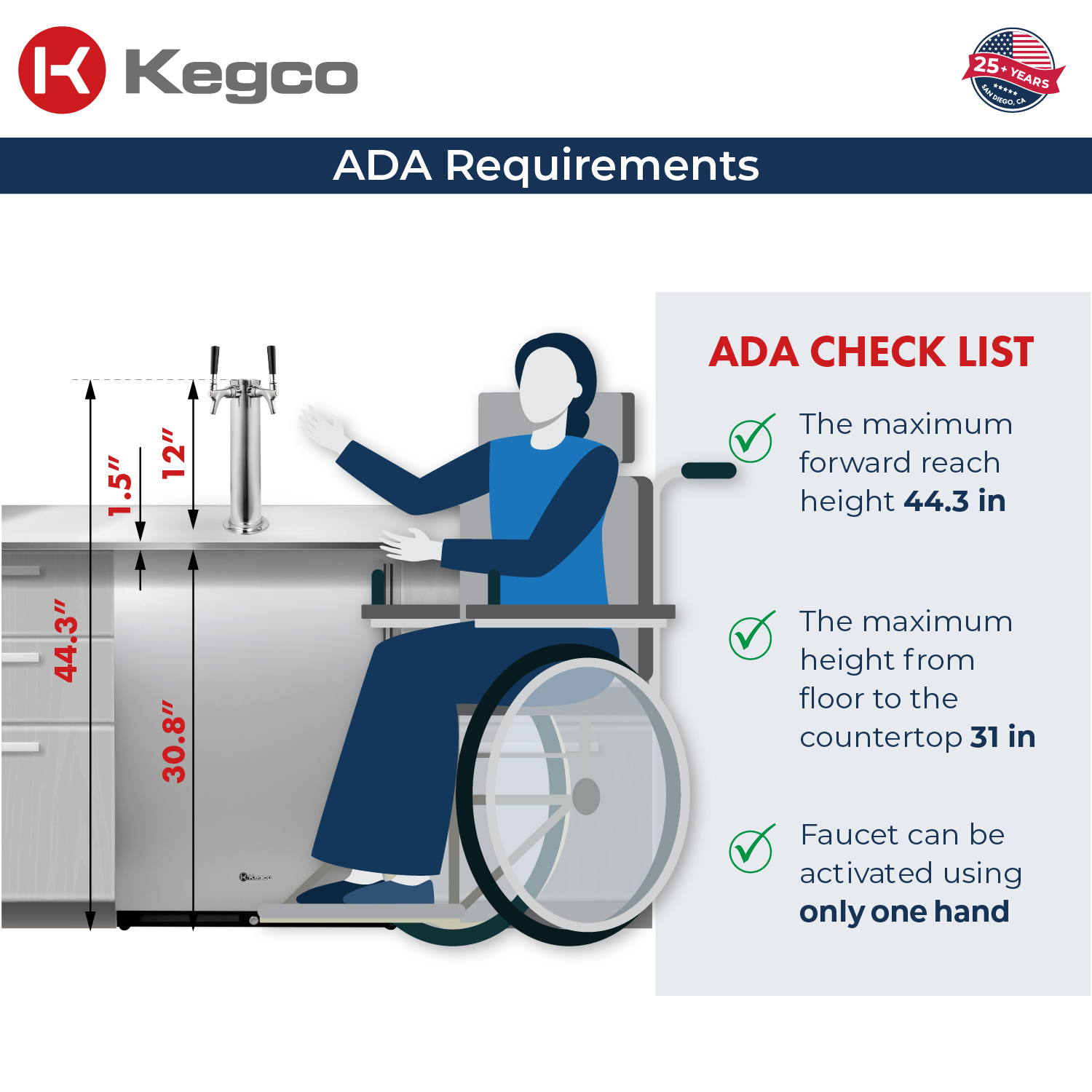 ADA-Compliant Height. At just 31 inch tall, this is the lowest ADA-compliant kegerator available, designed for universal accessibility without sacrificing performance.