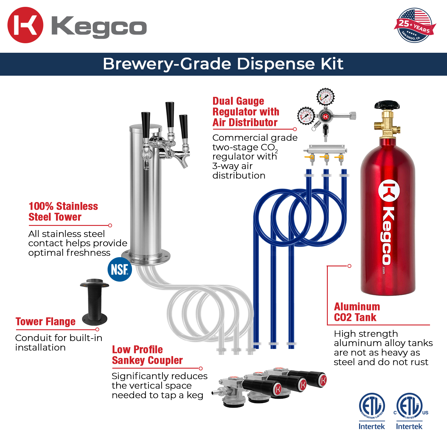 Triple-Tap Dispense System. Equipped with a complete 3-tap draft kit, featuring 100% stainless steel contact for freshness and purity in every pour.