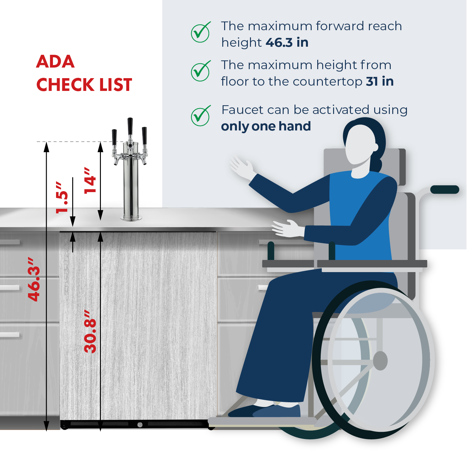 ADA-Compliant Height. At just 31 inch tall, this is the lowest ADA-compliant kegerator available, designed for universal accessibility without sacrificing performance.
