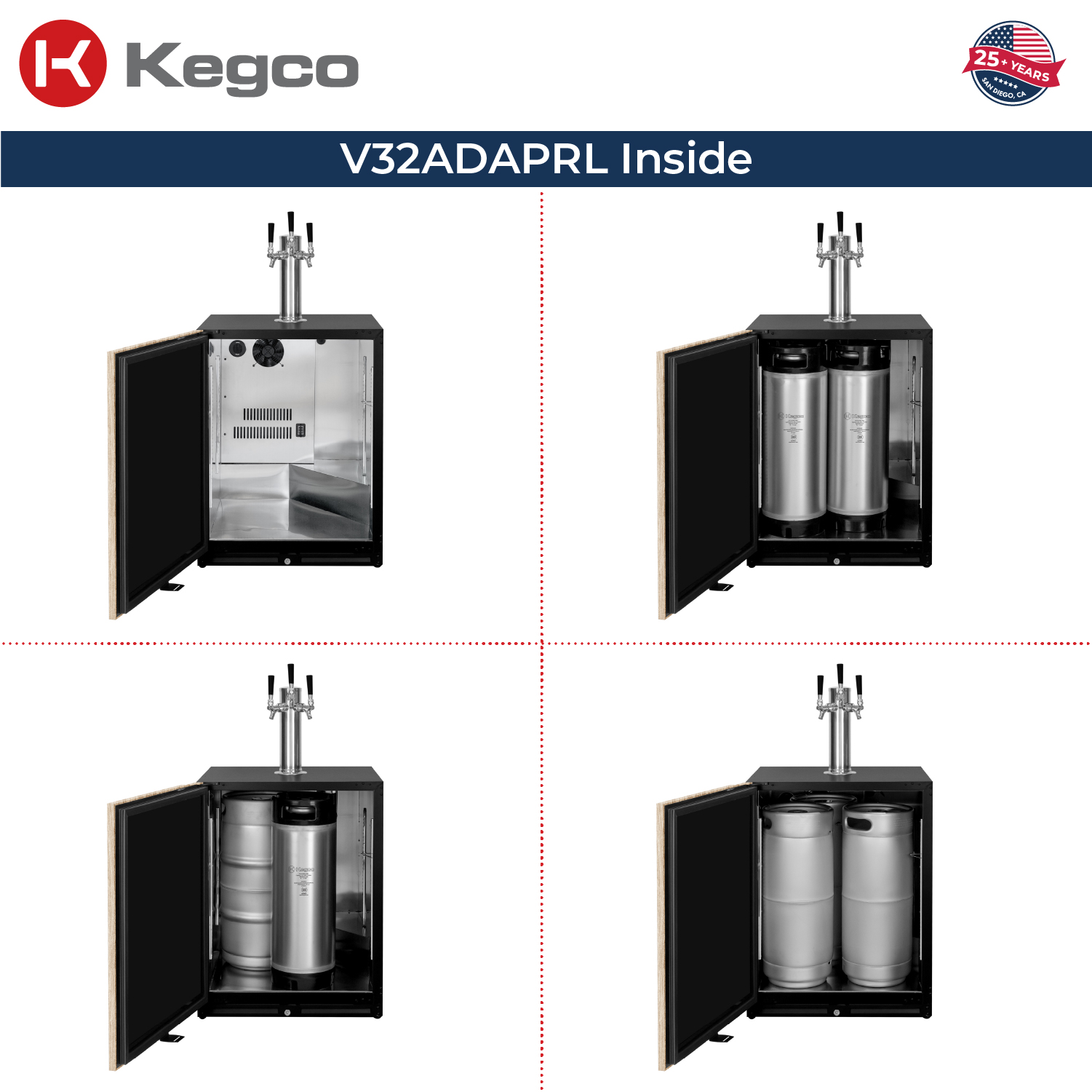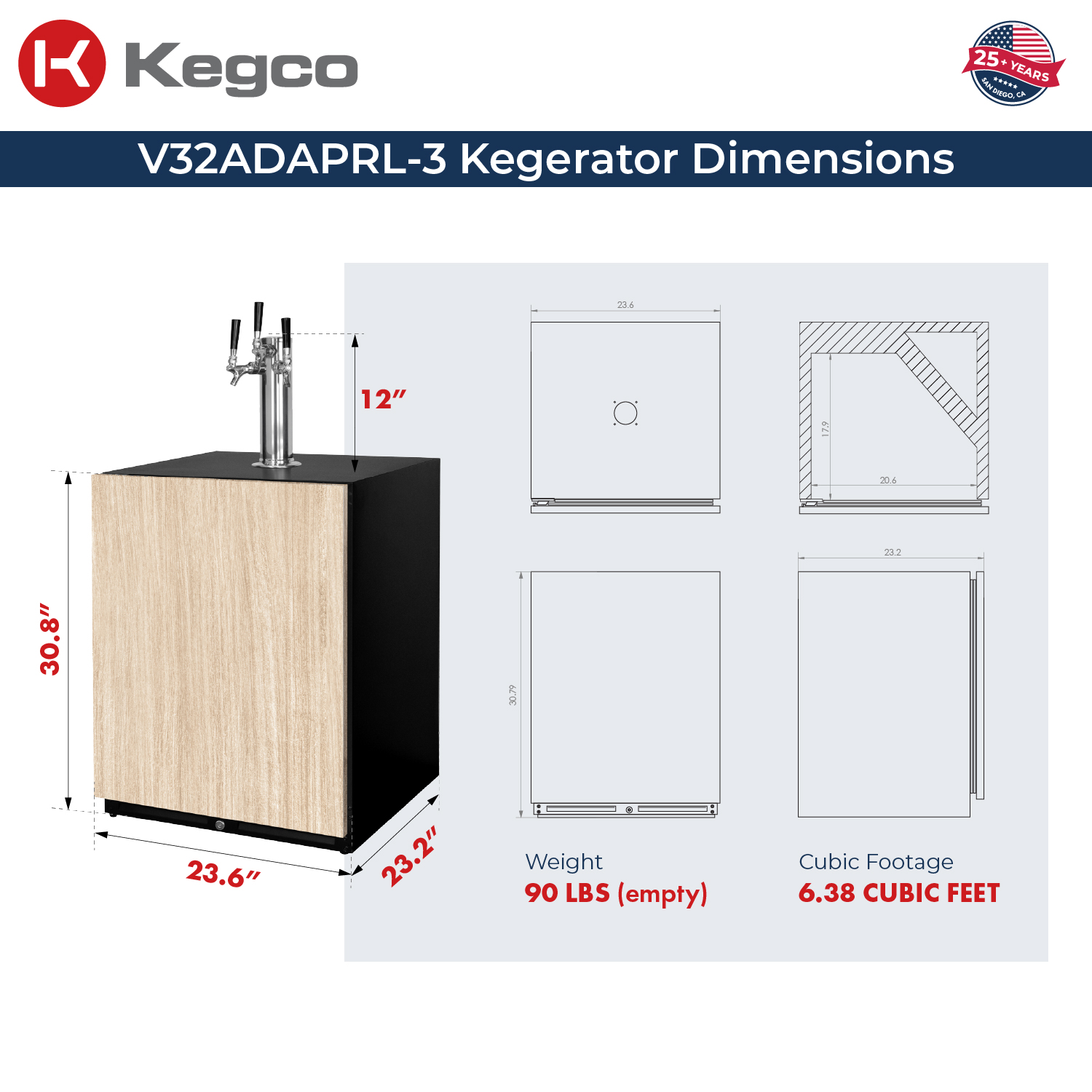 Kegco 24" Wide Triple Tap Panel Ready Overlay Built-In Left Hinge ADA Kegerator