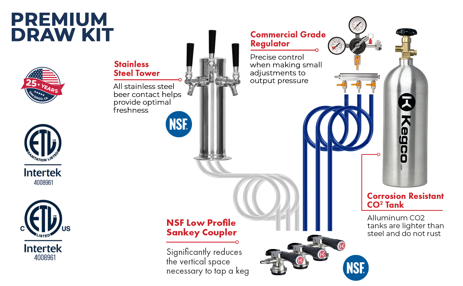Compact Footprint, Full Capacity. Smartly engineered to fit both full-size kegs and 5-gallon ball lock kegs, maximizing flexibility in tight spaces.