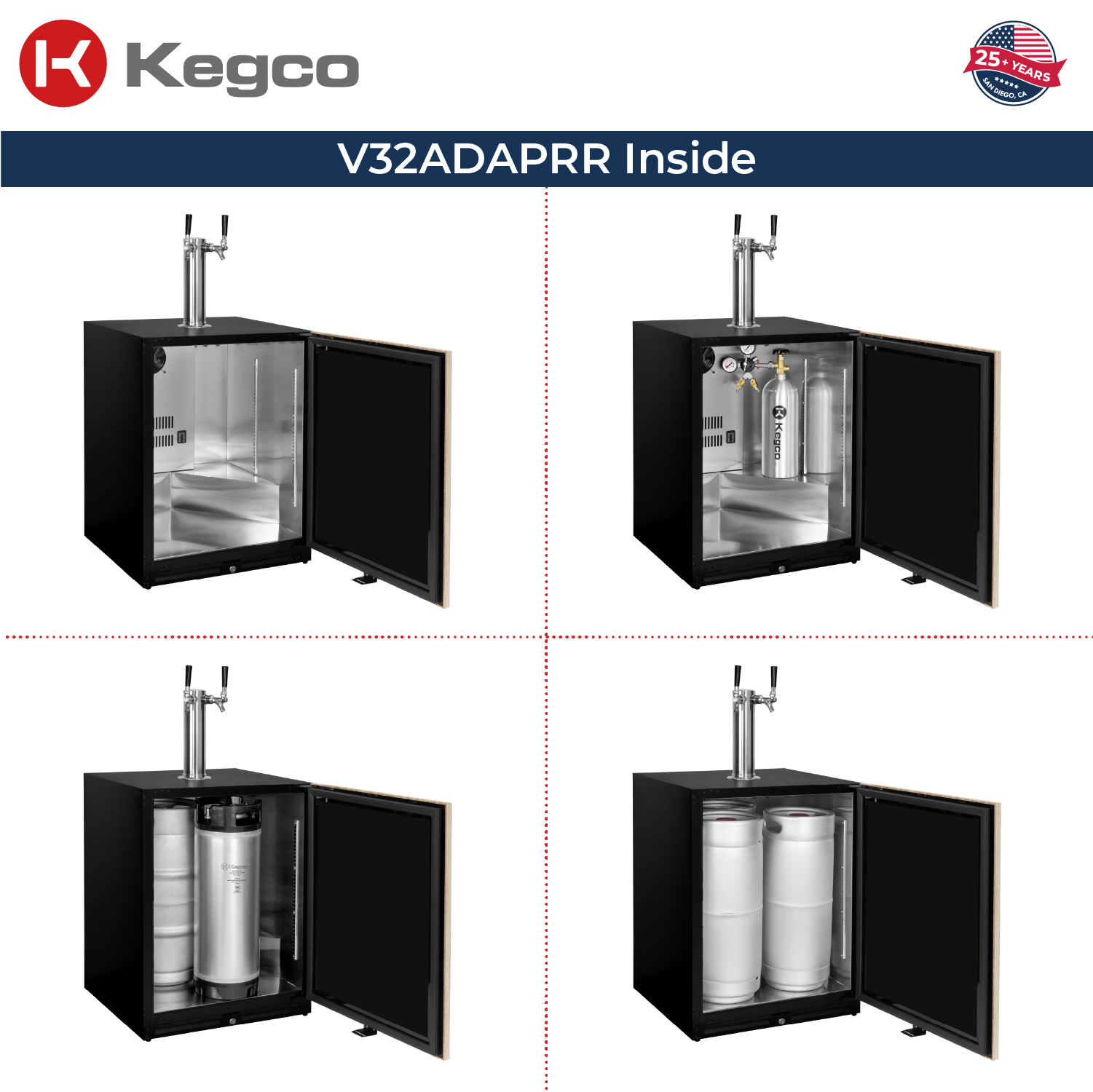 Compact Footprint, Full Capacity. Smartly engineered to fit both full-size kegs and 5-gallon ball lock kegs, maximizing flexibility in tight spaces.