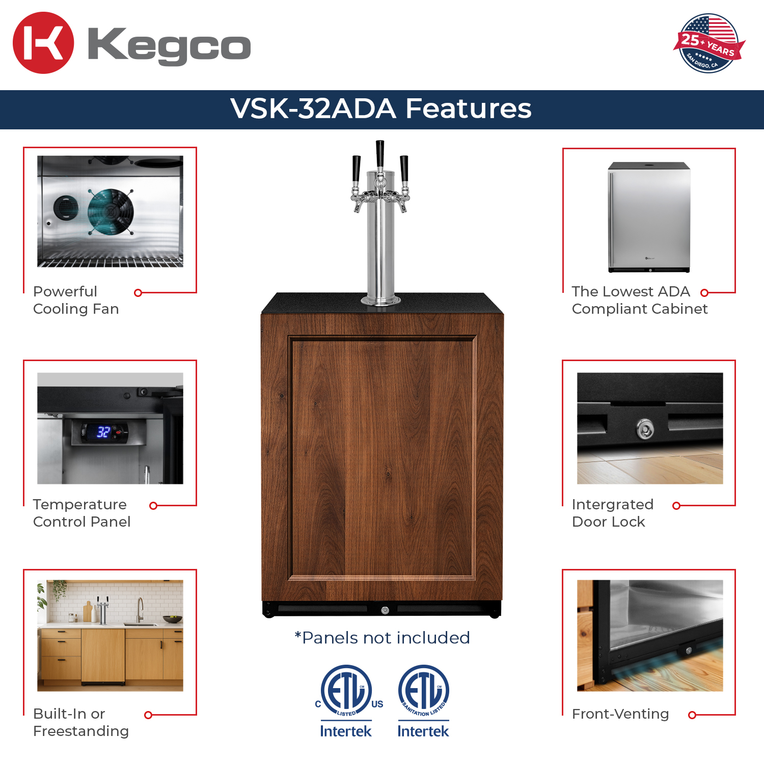 Kegco 24" Wide Triple Tap Panel Ready Overlay Built-In Right Hinge ADA Kegerator