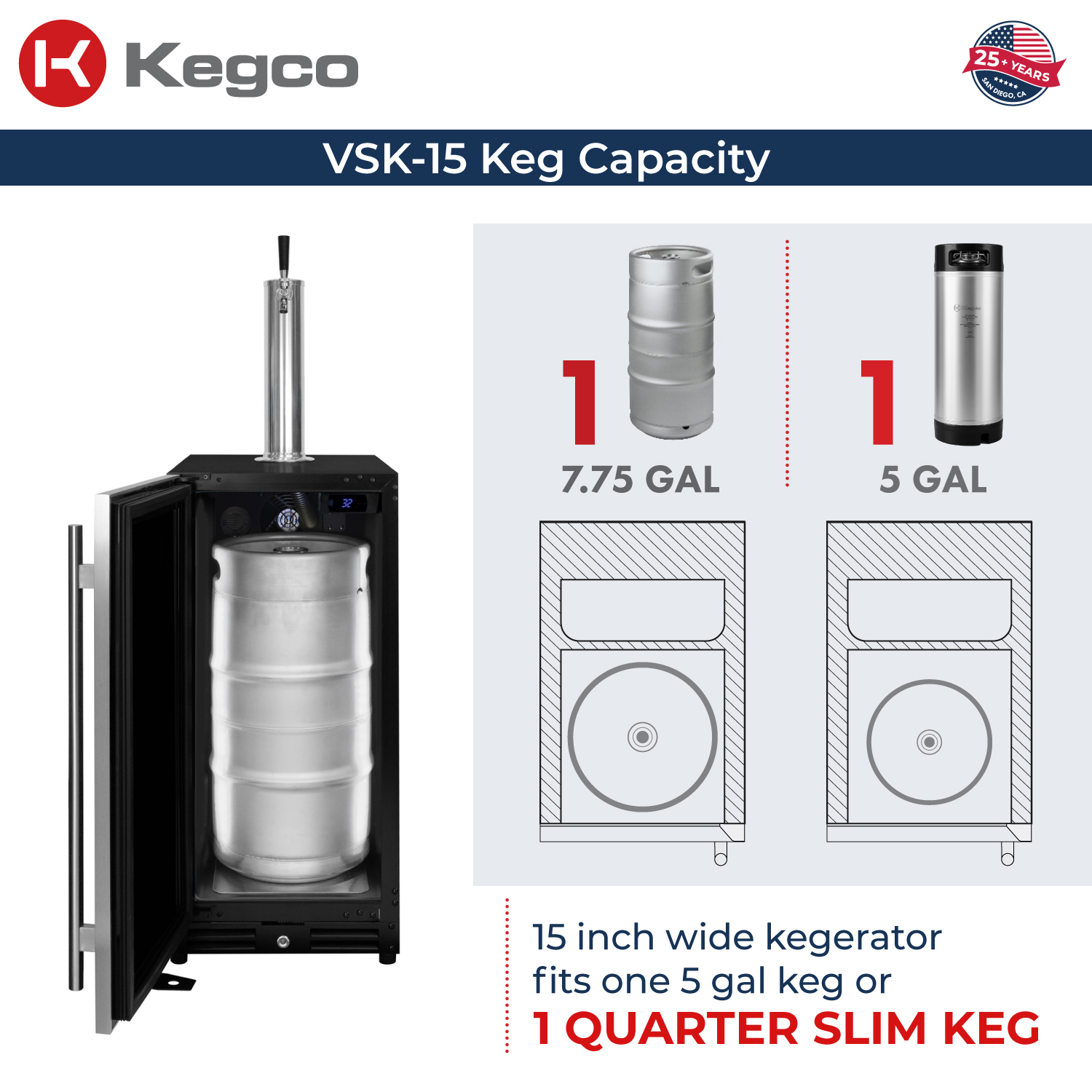 Kegco 15" Wide Undercounter Stainless Steel Door Built-In Left Hinge Kegerator